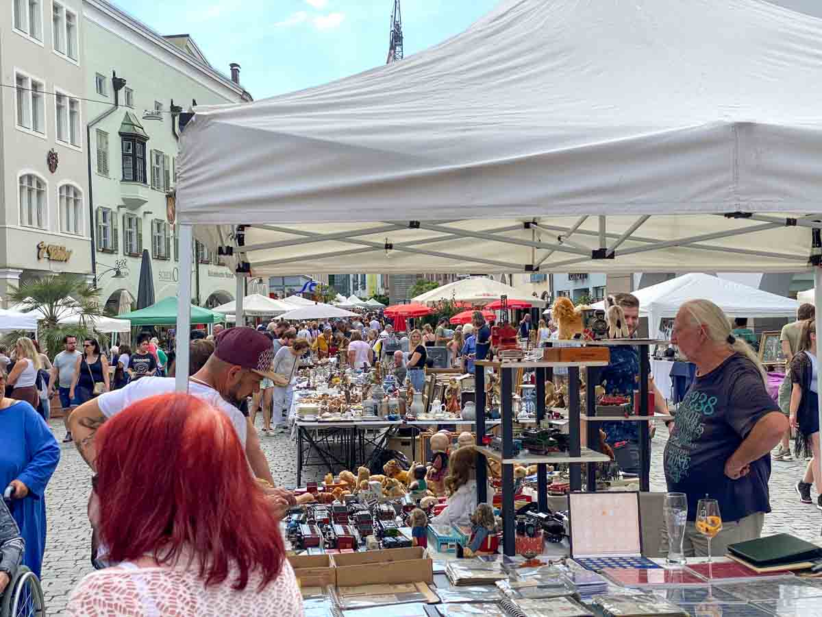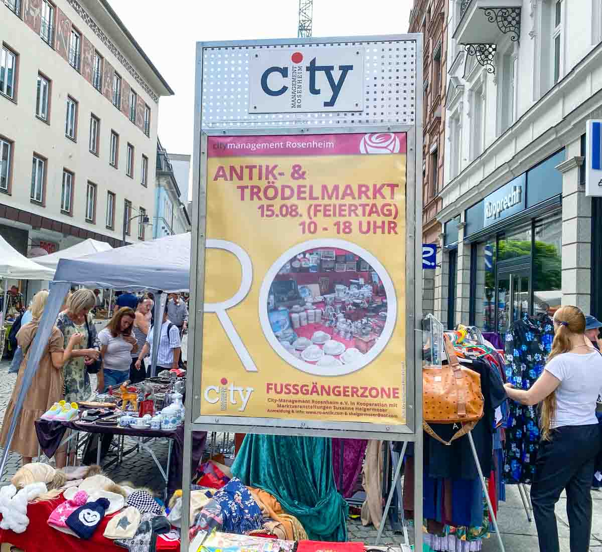 Im Bereich Max-Josefs-Platz, Heilig-Geist-Straße, Münchener Straße, Ludwigsplatz sowie Grüner Markt war heute (15.08.2022) in Rosenheim wieder Antik- & Trödelmarkt.