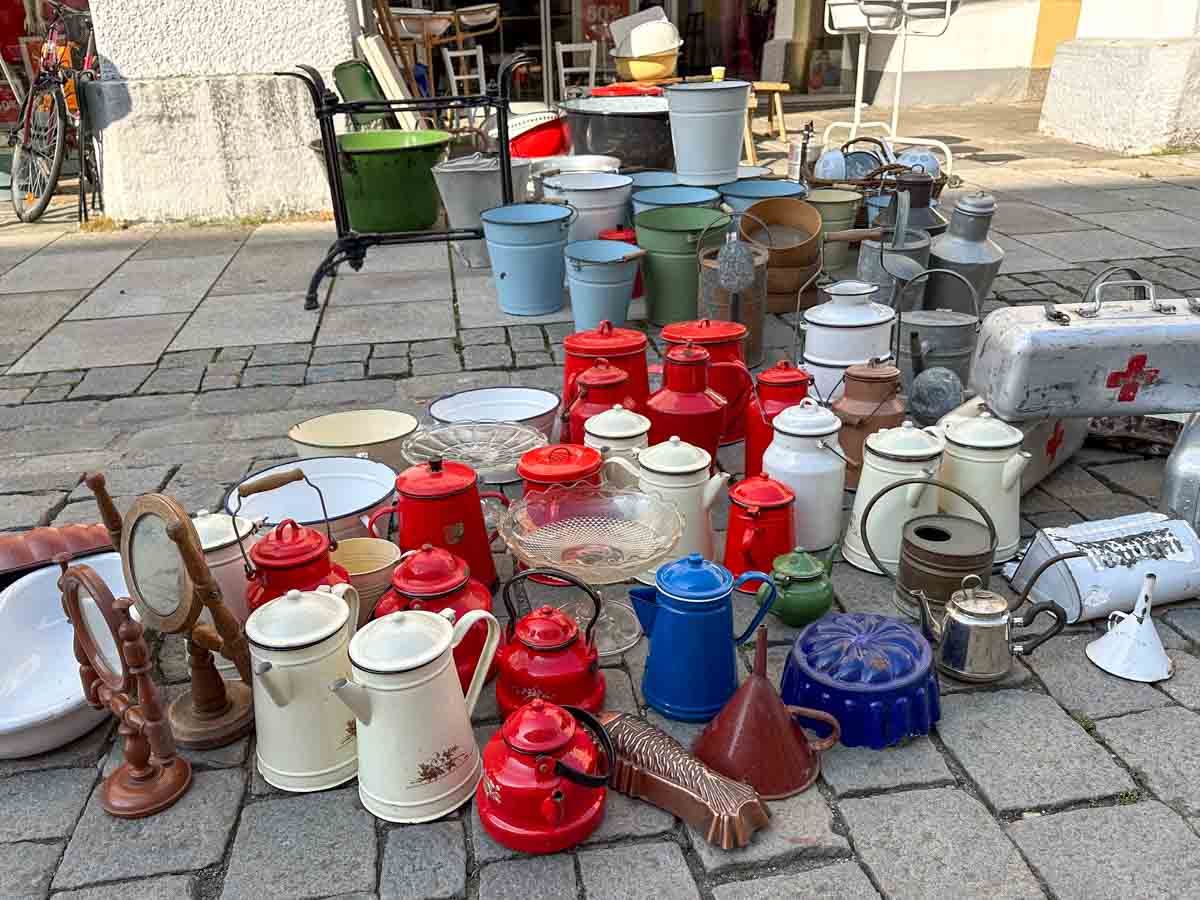 Von 10 bis 18 Uhr haben mehr als 100 Aussteller wieder Waren aus Porzellan und Glas sowie Möbel, Spielzeug, Bücher, Rahmen und Spiegel, Uhren, Puppen, Leinen und Spitzen (...) angeboten.