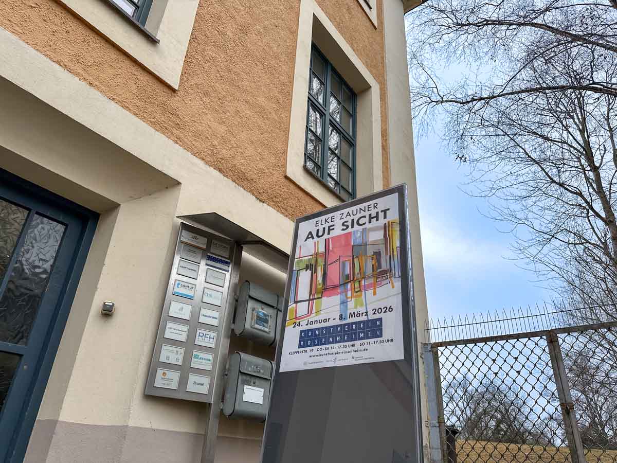 Wer beim Künstlerin-Gespräch nicht dabei sein konnte, schaut sich heute unsere Bilder und bei Gelegenheit die wunderbaren Arbeiten von Elke Zauner an. Die Ausstellung »Auf Sicht« ist noch bis 08.03.2026 im Kunstverein Rosenheim zu sehen. Geöffnet DO-SA 14-17:30 Uhr, SO 11-17:30 Uhr.