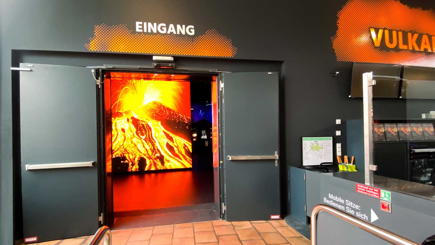Auf 90m² multimediale Inszenierung eines Vulkanausbruchs