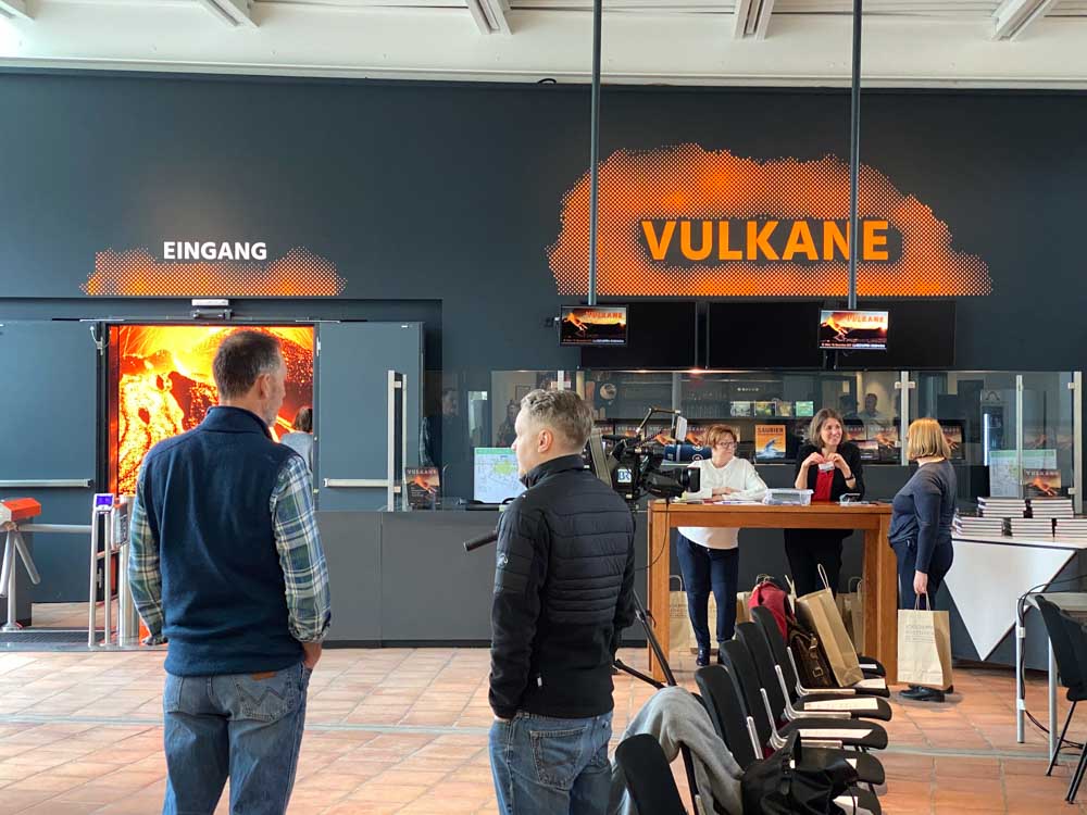 Blick in die Eingangshalle bei der Pressekonferenz VULKANE