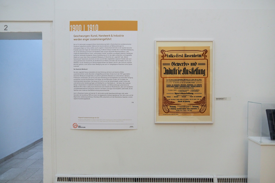 Mit zahlreichen Originalen, darunter einige international renommierte Klassiker, lädt diese besondere Werkschau zu einer wunderbaren Reise durch 100 Jahre „Made in Rosenheim“ und bietet zugleich gewissermaßen im Flanieren einen Einblick in die Design- und Wirtschaftsgeschichte des vergangenen Jahrhunderts.