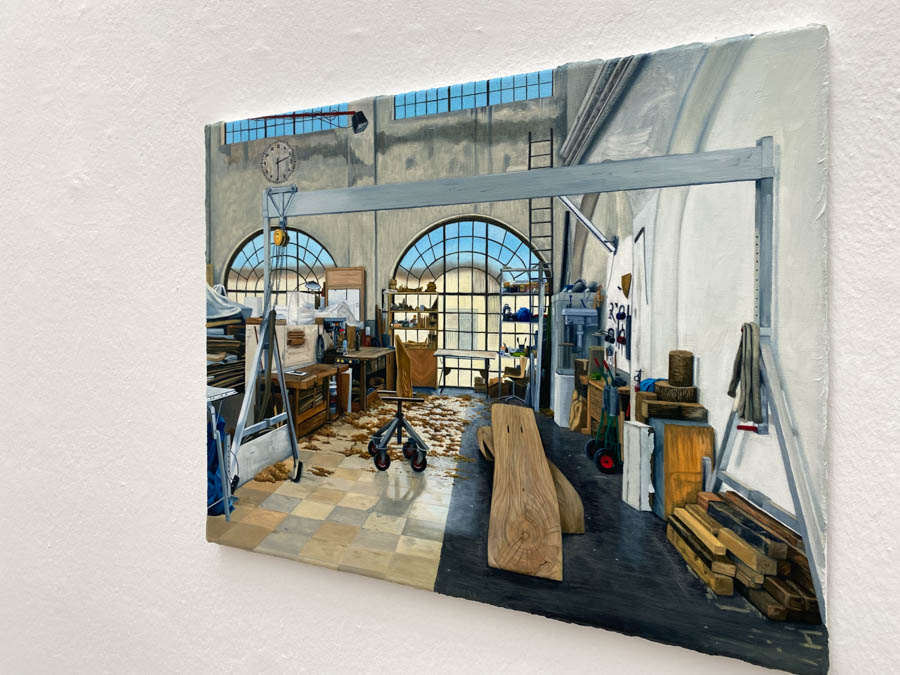 Den Kunstförderpreis 2023 bekommt der Künstler Manuel Rumpf für seine Öl auf Leinwand Arbeit Shelter.