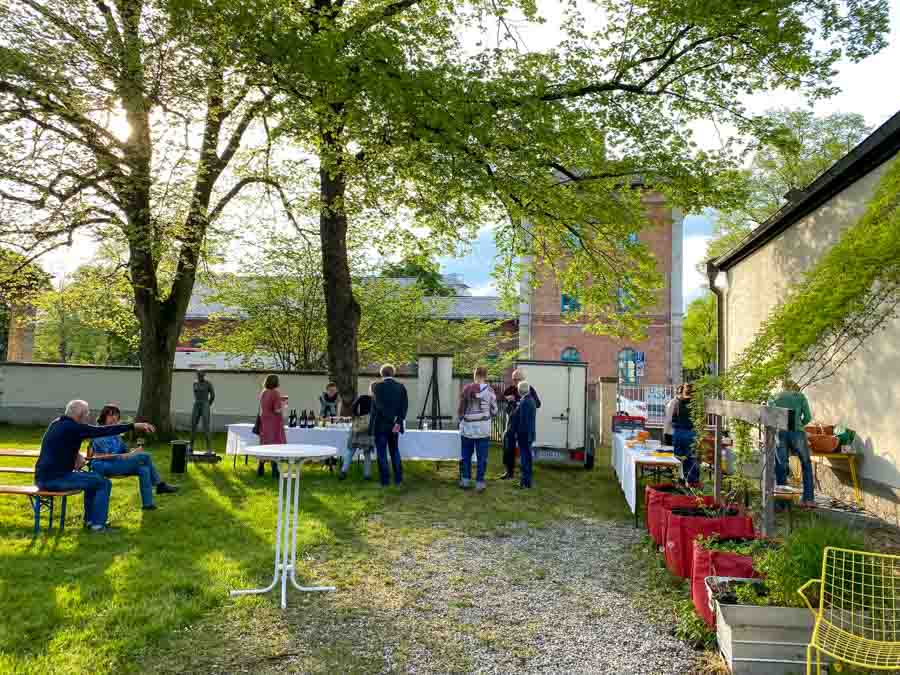Den Ausstellungsabend ließen die geladenen Gäste und Künstler im Galeriegarten ausklingen.
