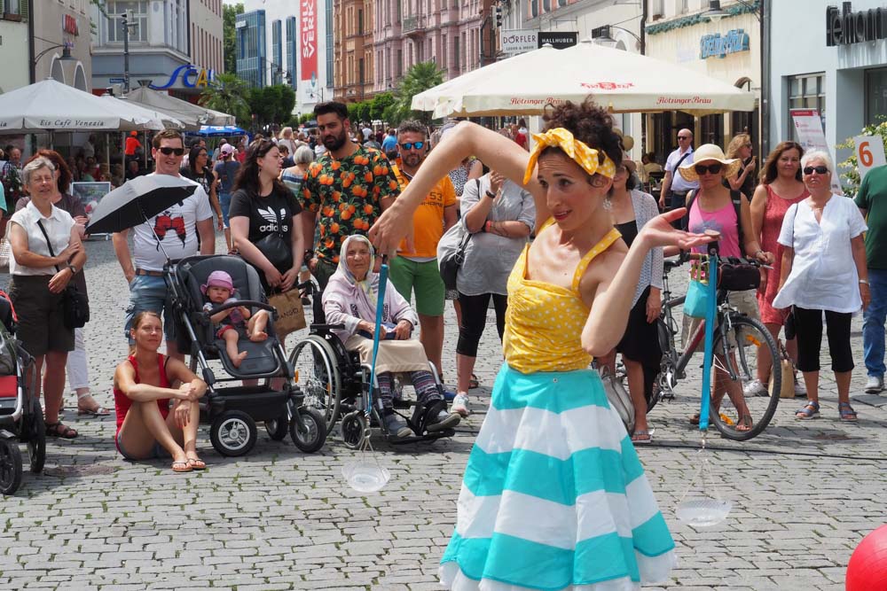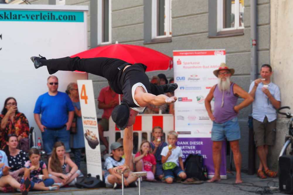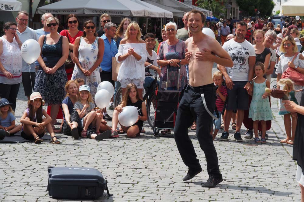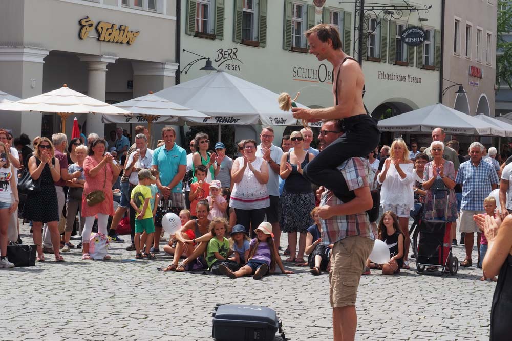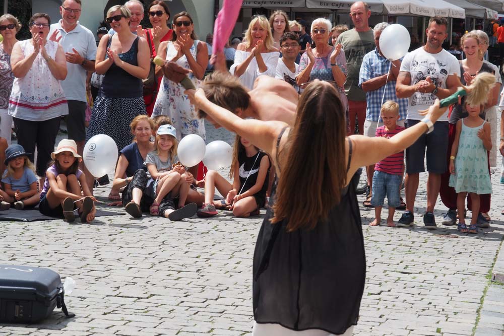 Am 26. und 27. Juli 2019 verwandelt sich die Rosenheimer Fußgängerzone in eine Straßenkunst-Bühne - die Besucher waren kurzer Hand Teil der Shows.