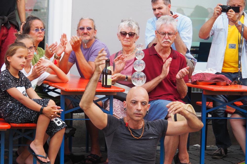 Künstler aus 13 verschiedenen Nationen unterhielten mit Straßenakrobatik, Straßentheater, Zauberei und Comedy und Straßenmusik ...