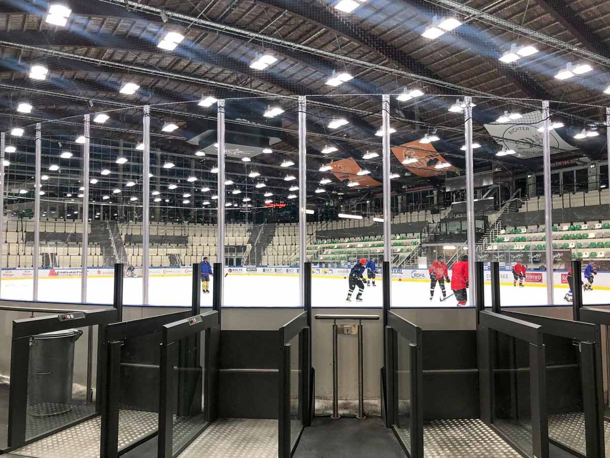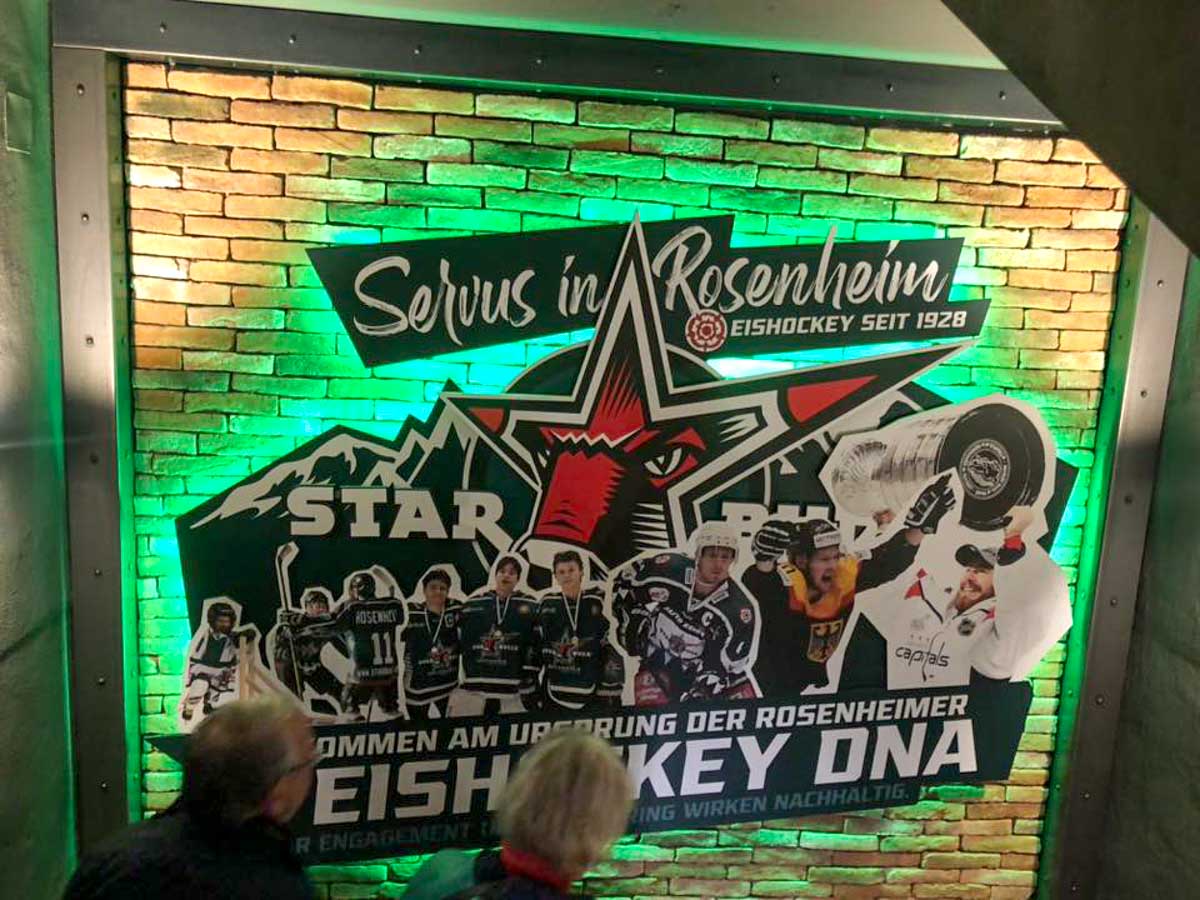 Bei der Stadtführung »Auf geht's STARBULLS, kämpfen und siegen!« gab es einen Rundgang durch das Eisstadion Rosenheim. Seit 1928 wird dort Eishockey gespielt.
