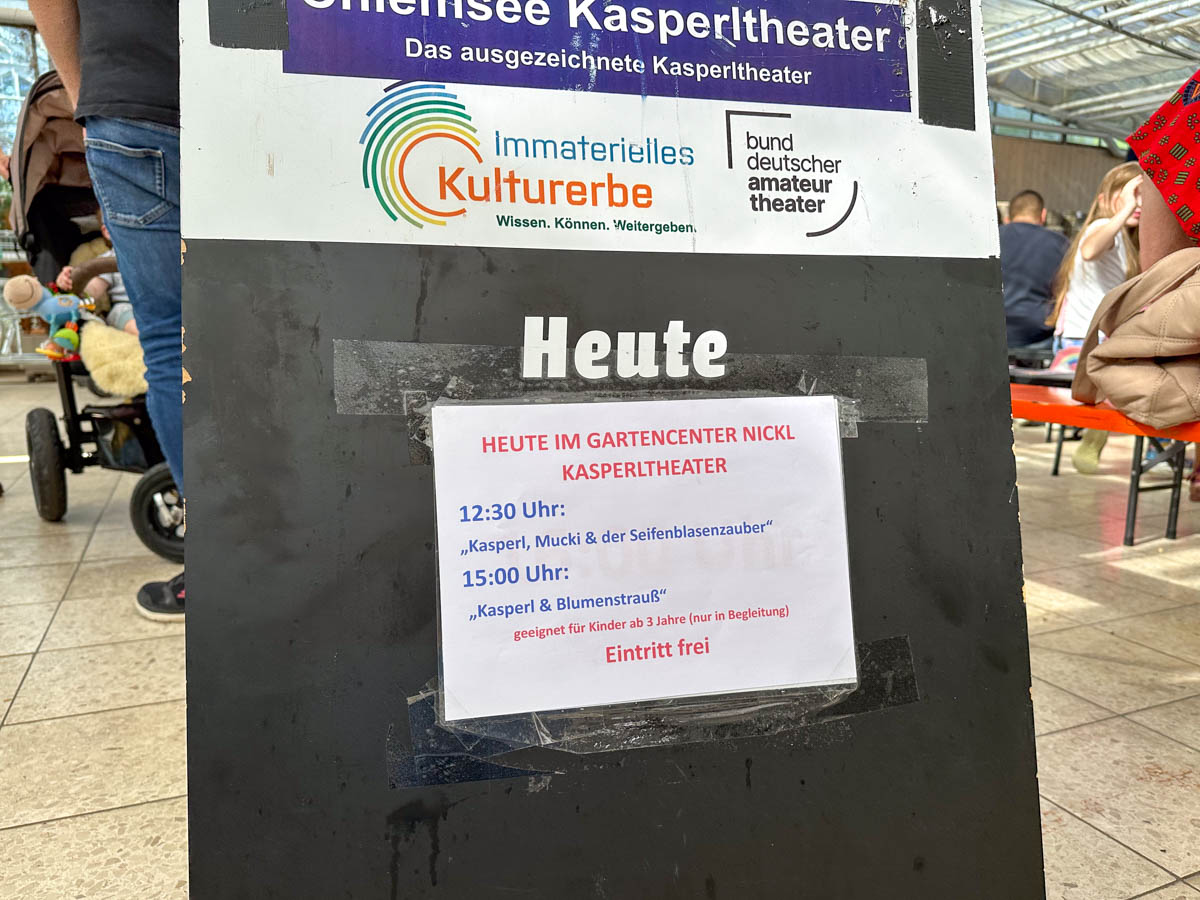Drinnen, inmitten der Pflanzenabteilung, begeisterte das Chiemsee Kasperltheater mit liebevoll gespielten Figuren und Geschichten.