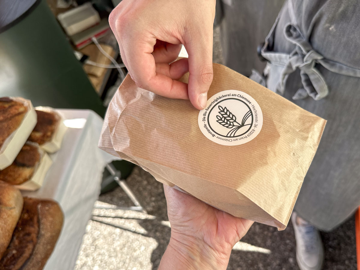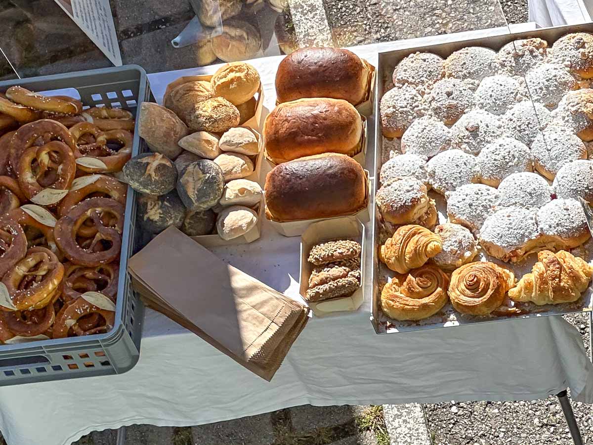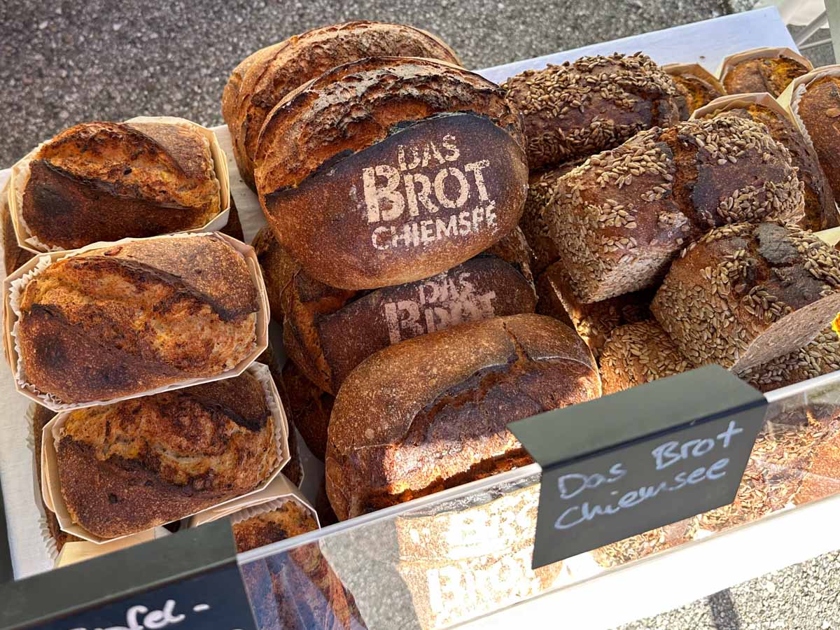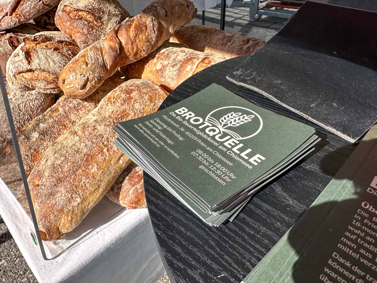 Am Stand von der Brotquelle Prien wurde verschiedene Brote, Dinkel-Chiabatta, Baguette, Brezen, Semmel, Dinkelbuchteln (...) angeboten.