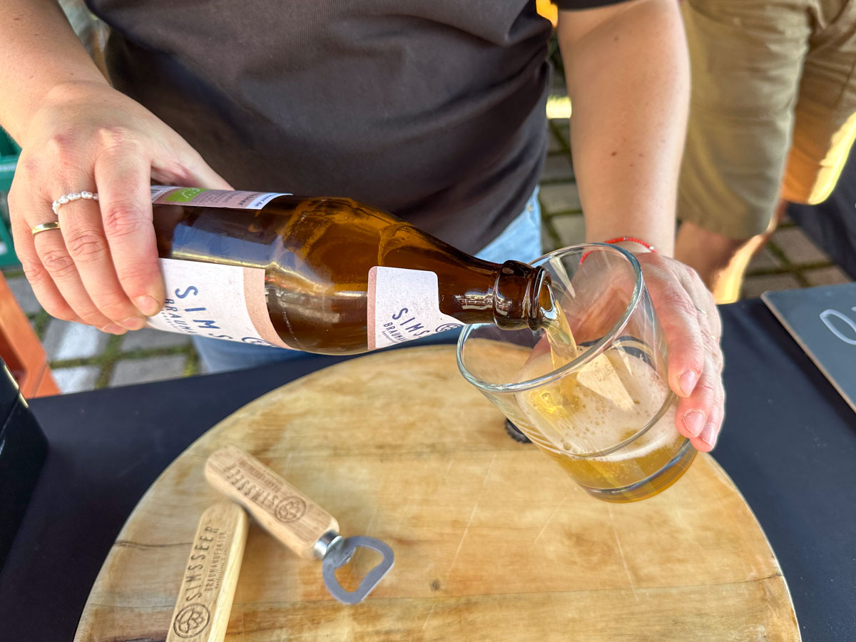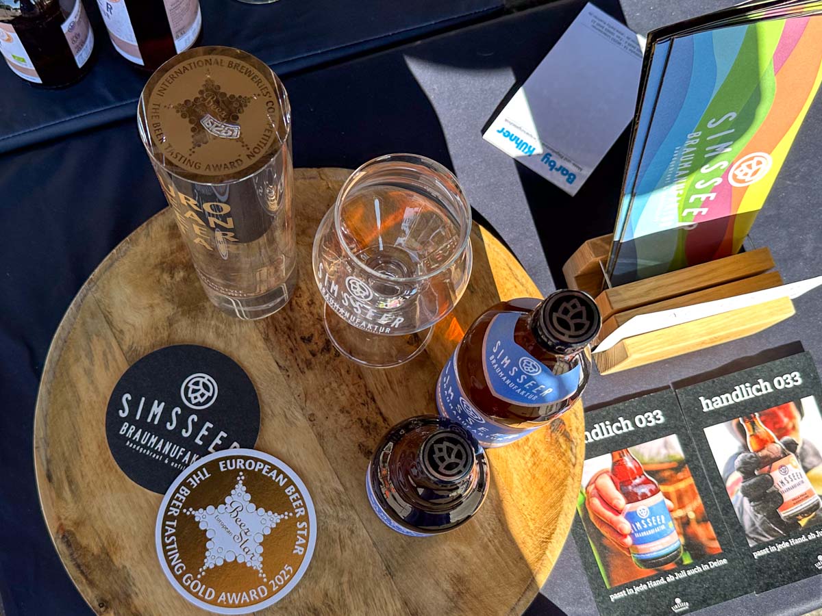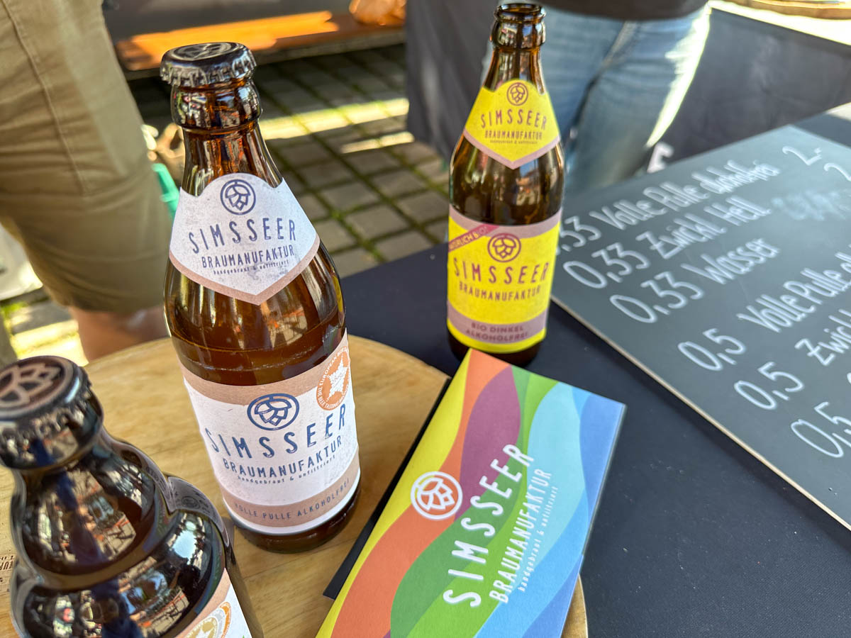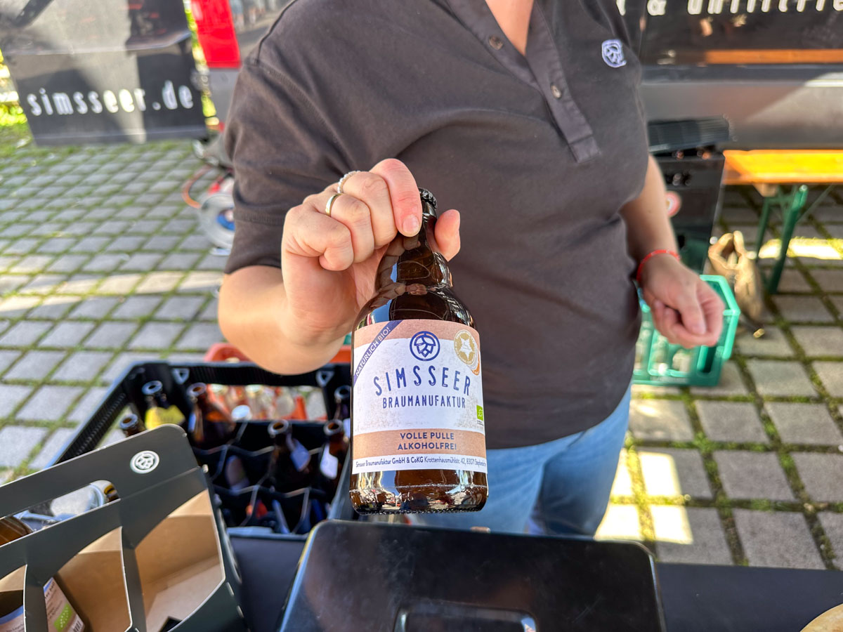 Einen Stand weiter gab es ein süffigs Bier von der Simsseer Braumanufaktur. Wir haben uns eine Dinkelweiße und eine Volle Pulle Alkoholfrei zum Probieren einschenken lassen. Wer die Simsseer Alkoholfreien nicht kennt, die schmecken herrlich frisch, nicht bitter, eher zitronig. Bestes Alkoholfreies!