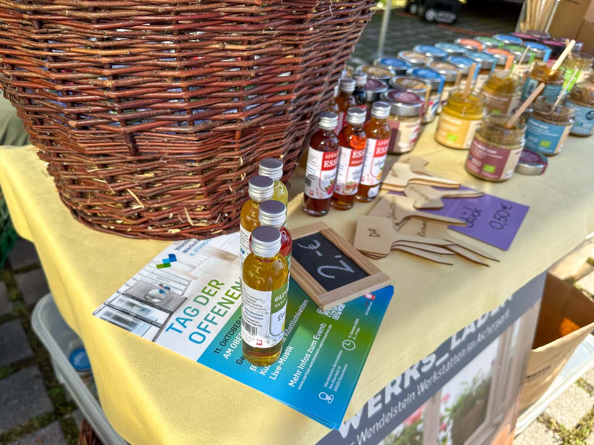 Mit viel Liebe und Kreativität boten die Wendelstein Werkstätten beim Familientag im Gartencenter verschiedene Senfvariationen, Essig und Öle aus ihrer Genusswerkstatt an.