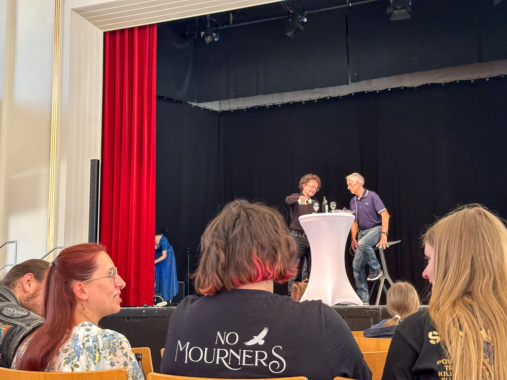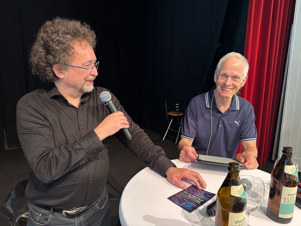 Die Autoren Bernhard Hennen (links im Bild) und Andreas Brandhorst bei ihrer Lesung im Ballhaus