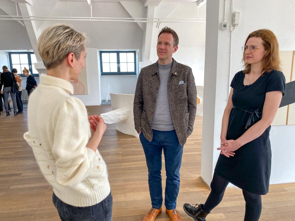 Ein Selfie mit dem Künster Jakob Gilg bei der Finissage Mercator mit Olena Balun, Kunstverein Rosenheim (Mitte) und Silke Graf, Stadttipps Rosenheim