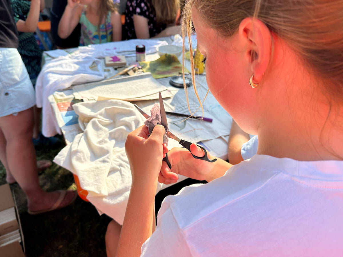 Die Kids ließen der Fantasie freien Lauf, lernten spannende Techniken kennen und verwandelt getragene, aussortierte Kleidungsstücke in neue Unikate.