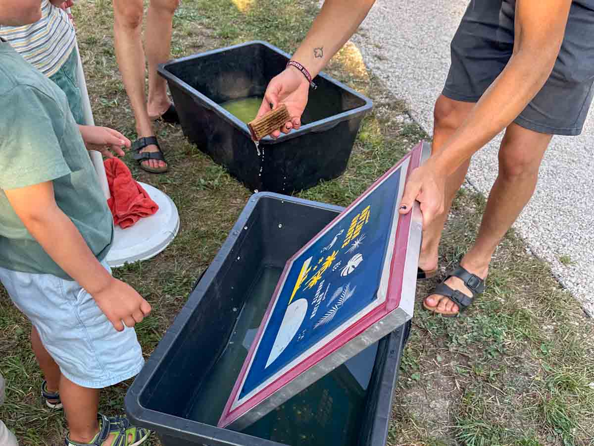 Stempeldruck, Scherenschnitt & Siebdruck am Rosenheimer Kulturstrand