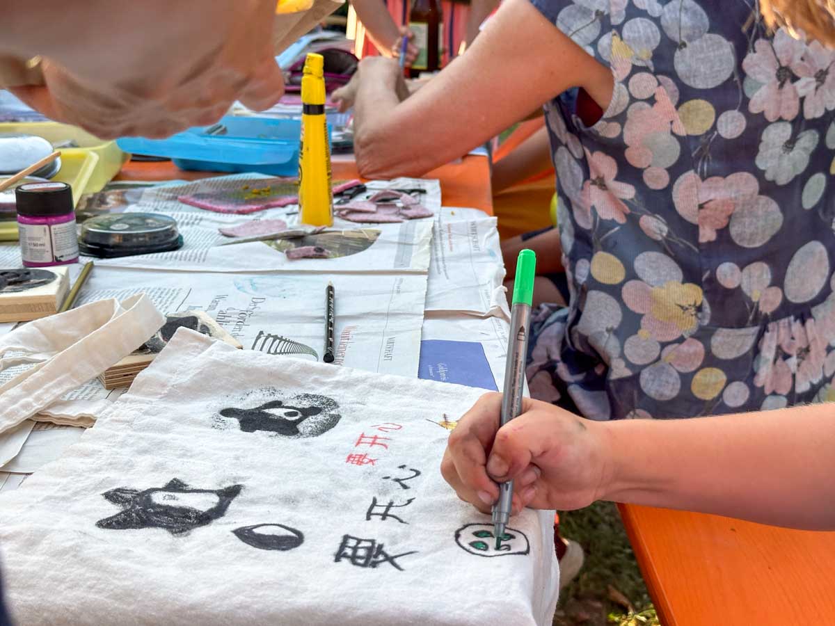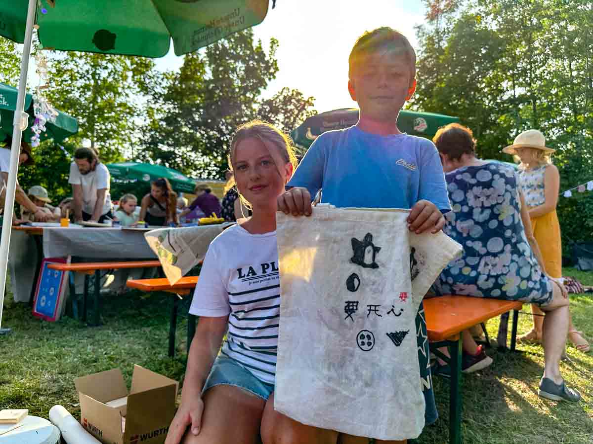 Eine kunterbunte Familienzeit erwartete große und kleine Kinder beim Kids-Special-Workshop Upcycling mit Stempeldruck, Scherenschnitt & Siebdruck! Aus alten T-Shirts oder Beuteln wurden einzigartige Stücke gestaltet.