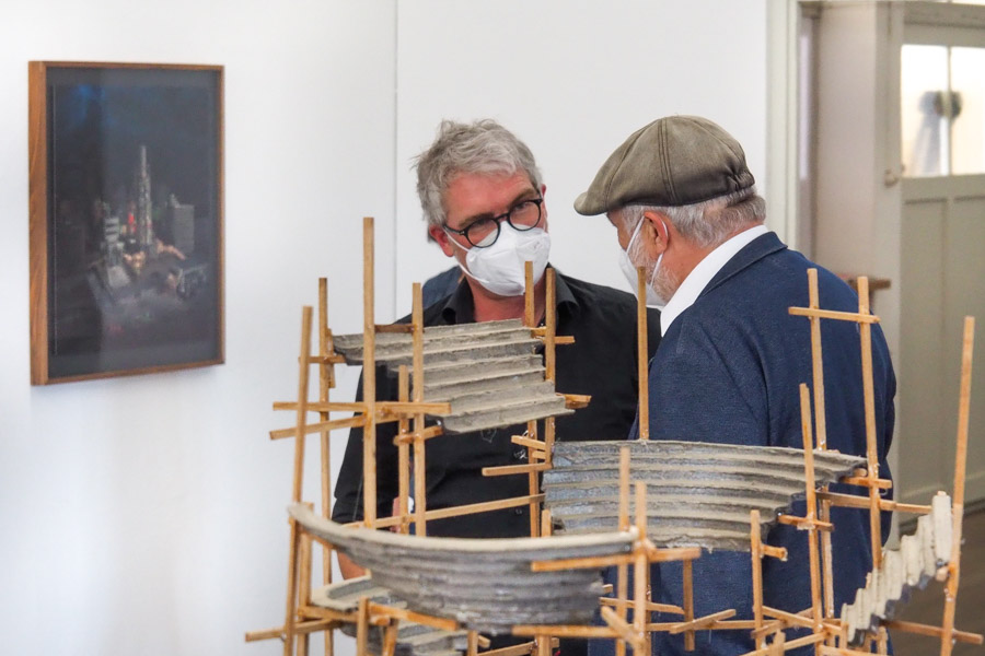 Am Freitagabend (9.7.2021) waren wir bei einer spannenden Ausstellungsführung, denn der diesjährige Sondergast des Kunstverein Rosenheim, der niederländische Künstler Rob Voerman, hat lockeren Dialog mit dem Bildhauer Hannes Stellner durch seine Ausstellung Entropic Empire geführt.