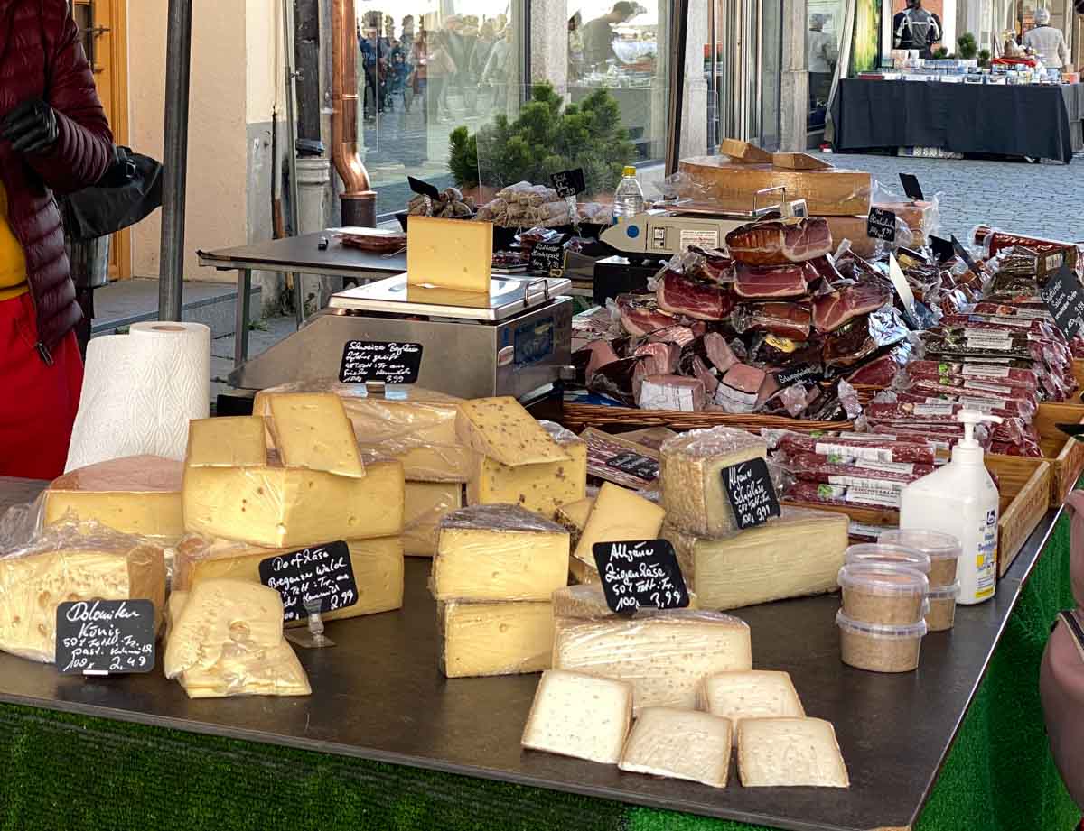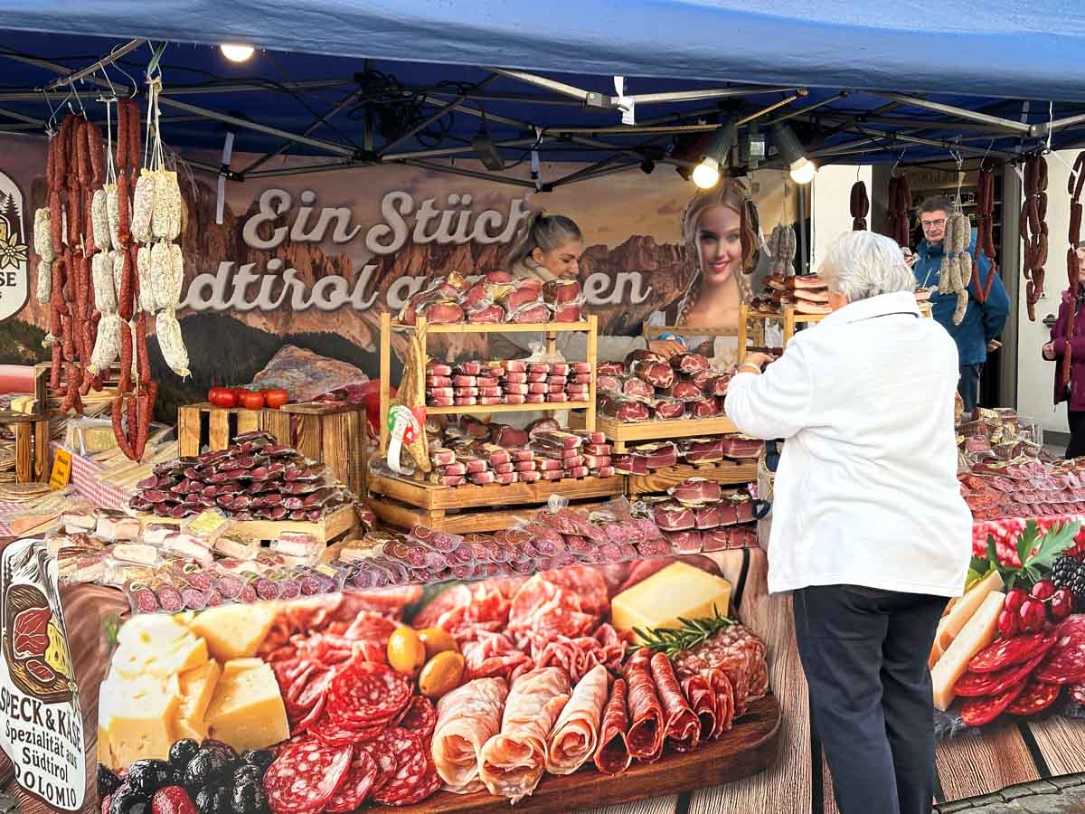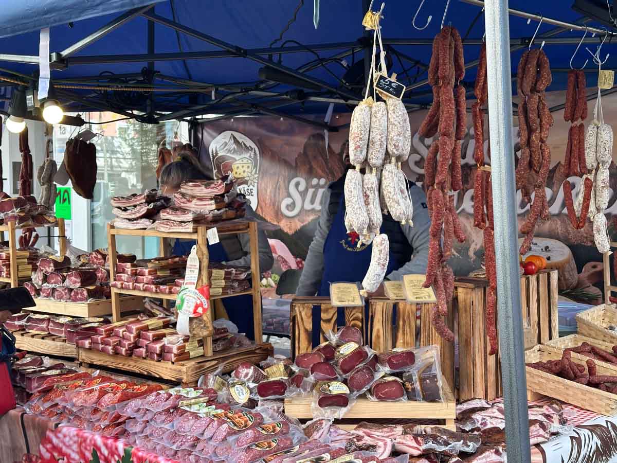 Es wurden wieder regionalen Erzeugnisse wie Seifen, Kräuter, Räucherwaren, Käse, Obst und Gemüse, köstliche Antipasti und Aufstriche bis hin zu riesigen Krapfen angeboten.