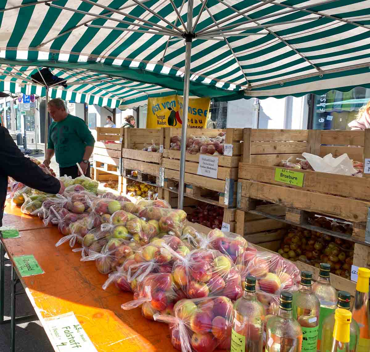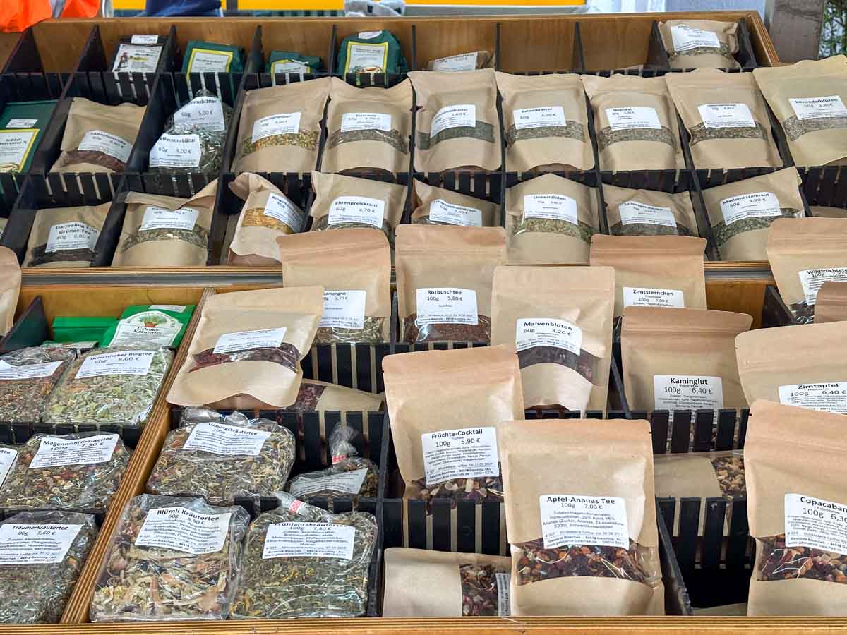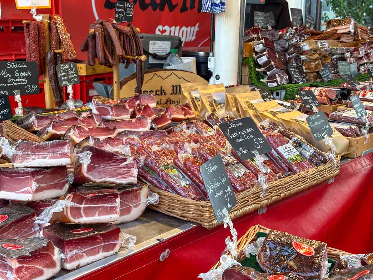 Es wurden wieder regionalen Erzeugnisse wie Seifen, Kräuter, Räucherwaren, Käse, Obst und Gemüse, köstliche Antipasti und Aufstriche bis hin zu riesigen Krapfen angeboten.
