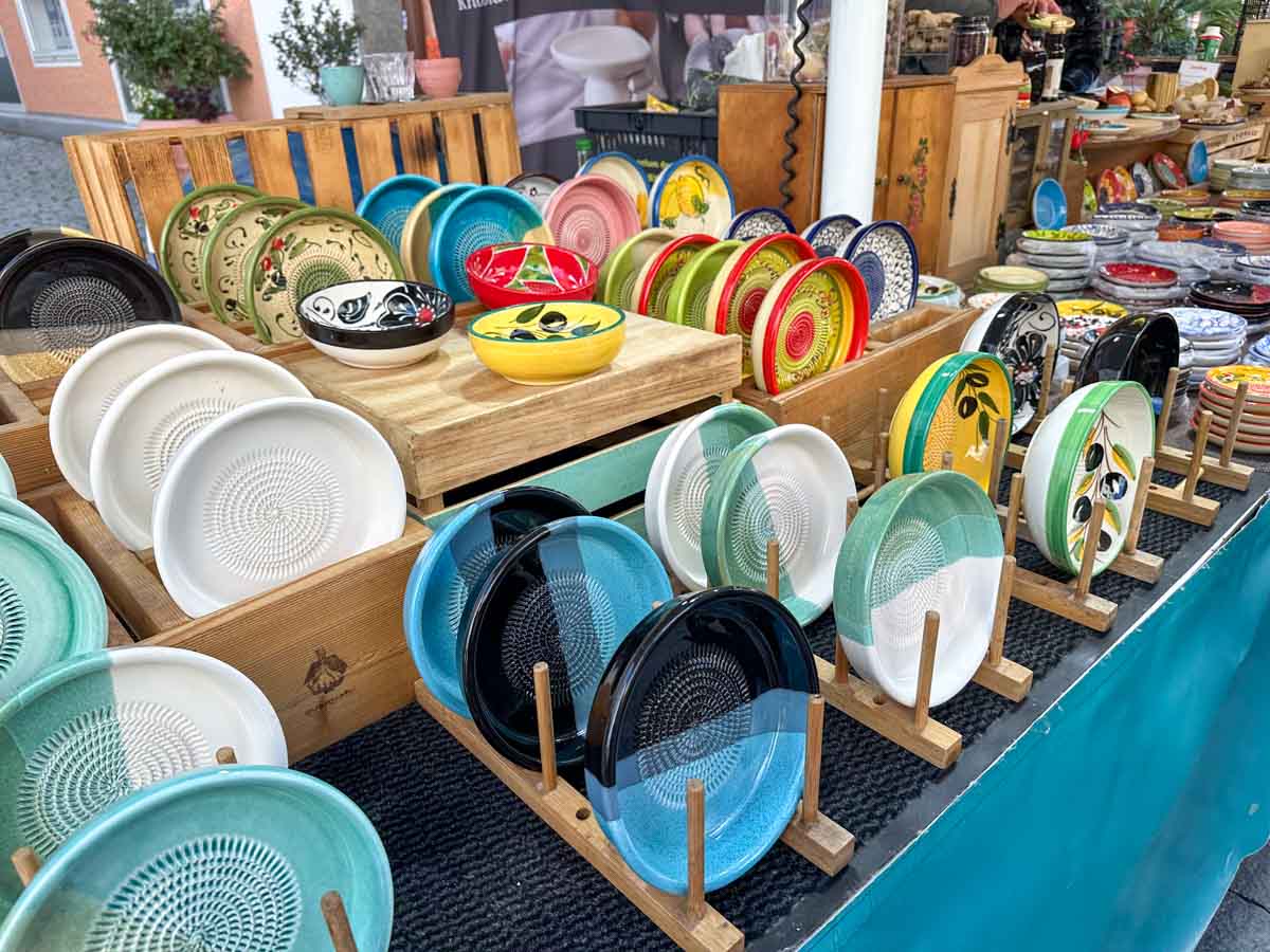 Außerdem haben wir Praktisches für Haushalt und Küche wie bunte südländische Keramikreiben, wunderschöne Becher und Schüsseln sowie Wärmendes wie Handschuhe, Felle, Socken und Mützen entdeckt.