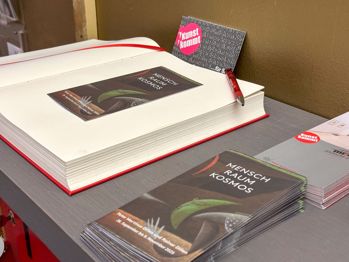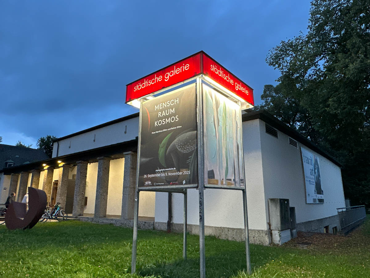 Vom 26. September bis 09. November 2025 zeigt die Städtische Galerie in der Ausstellung »Mensch Raum Kosmos« Arbeiten des bemerkenswerten Vater-Sohn-Duos Peter Martinus Dillen und Rainer Dillen. Bilder vom Abend