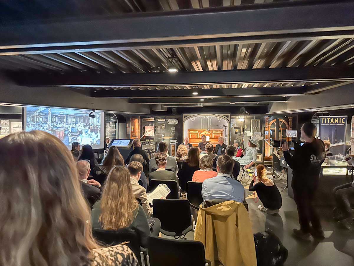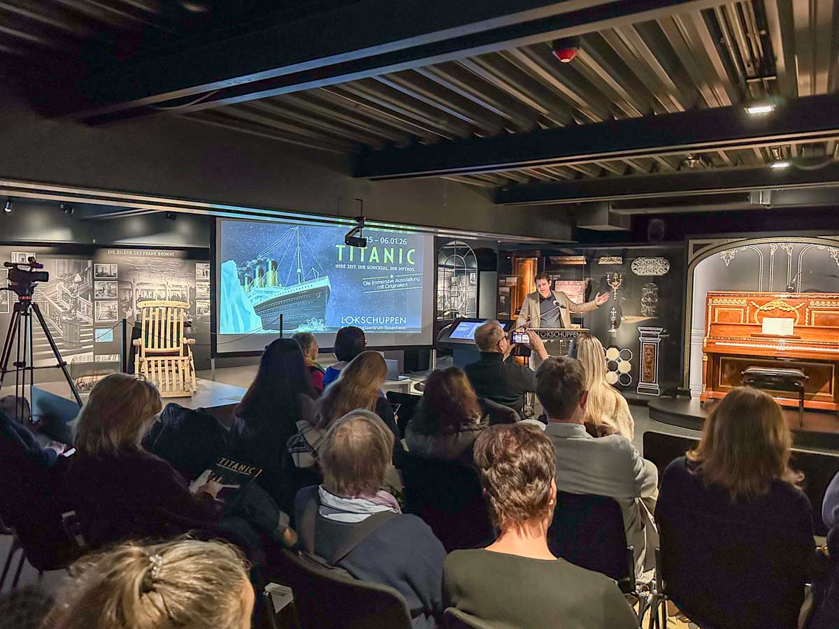 Lokschuppen-Leiterin Dr. Jennifer Morscheiser sprach mit den Kuratoren Siebo Heinken und Dr. Peter Miesbeck sowie dem Titanic-Experte Günter Bäbler über die Entstehung und die Schwerpunkte der Ausstellung. Dabei wurde deutlich, wie aktuell und faszinierend die Geschichte der Titanic bis heute ist.