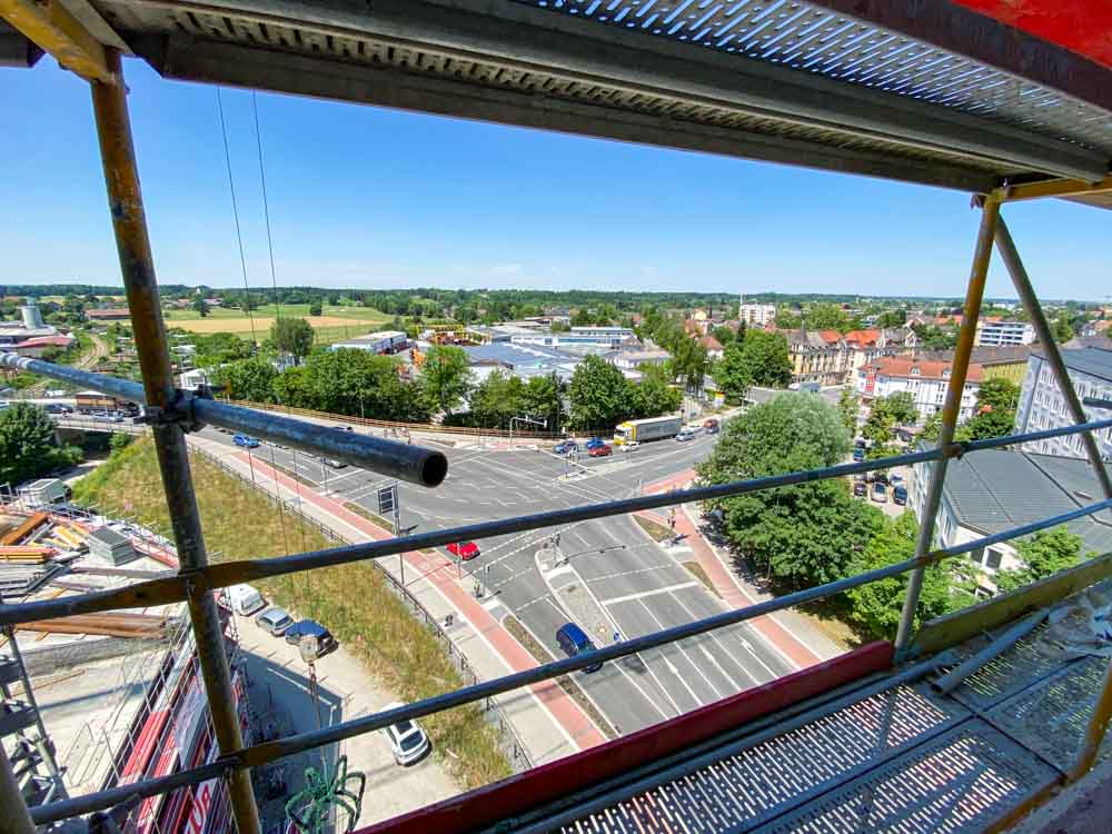Blick aus der 7. Etage der Lokhöfe Offices auf die Münchener Straße