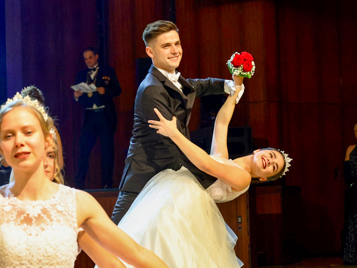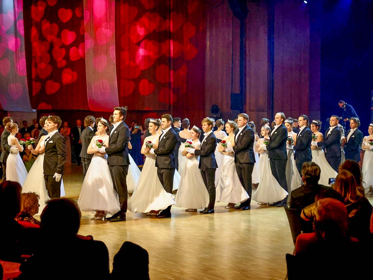 Schon die Eröffnung der 20 Debütanten-Paare setzte ein erstes Glanzlicht. Mit einer klassischen Fächer-Polonaise und der lebhaften „Annen-Polka“ von Johann Strauss (Sohn) wurde der Ballabend feierlich eingeläutet. Spätestens beim gefühlvollen Kesmarki-Walzer Romeo und Julias unvergessliche Liebe war das Publikum verzaubert – romantisch, ausdrucksstark und wunderschön getanzt.