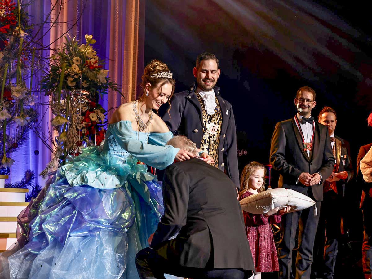 Anschließend wurde es romantisch: Der Prinzenwalzer ließ den Ballsaal für einen Moment stillstehen. Prinz Korbinian I. und Prinzessin Ursula I. tanzten mit viel Gefühl über das Parkett – ganz so, wie man es sich an einem Rosenball erträumt. Ein Walzer voller Eleganz, der dem Abend seine festliche Krone aufsetzte.