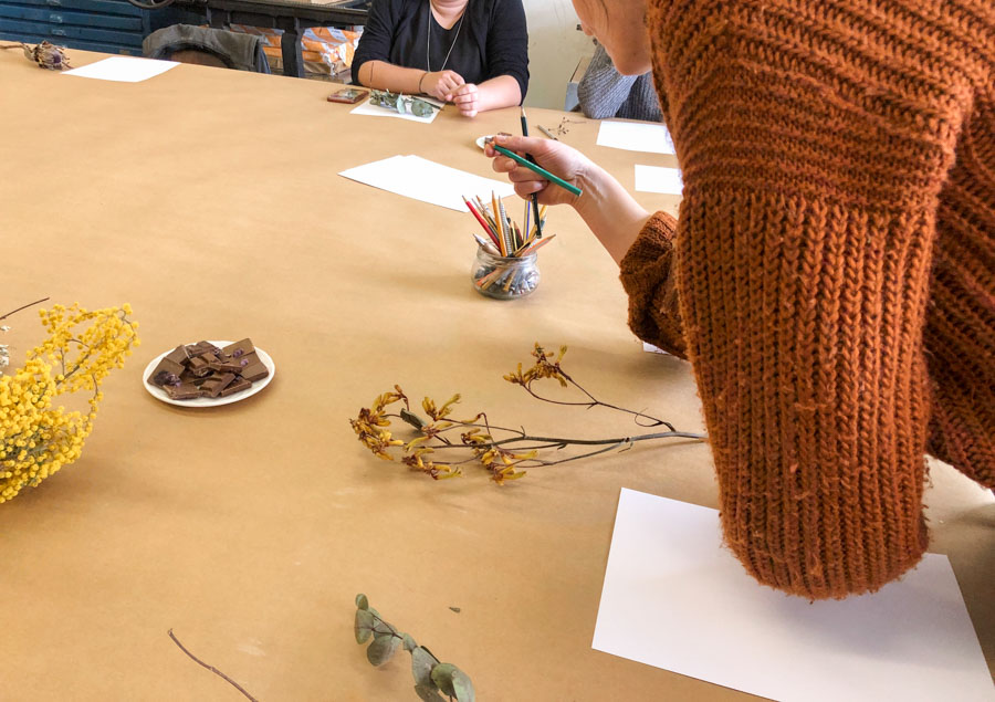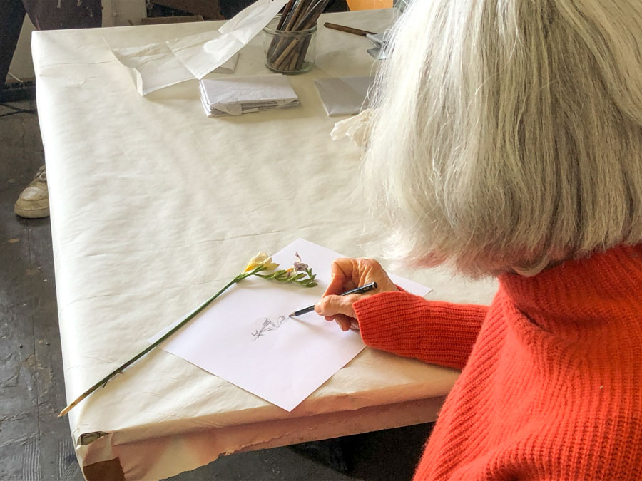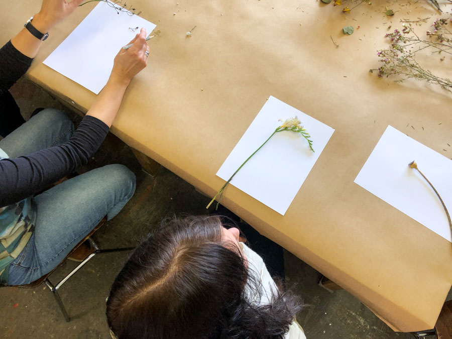 Gemalt und radiert wurde nach Vorgabe einer Blume, die sich jeder Teilnehmer wählen durfte.