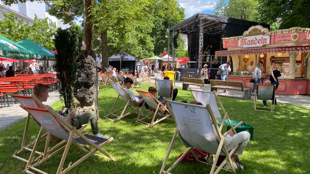 Einfach mit der Familie oder Freunden im Liegestuhl mit Essen und Drinks vor der Konzertbühne abzuhängen!