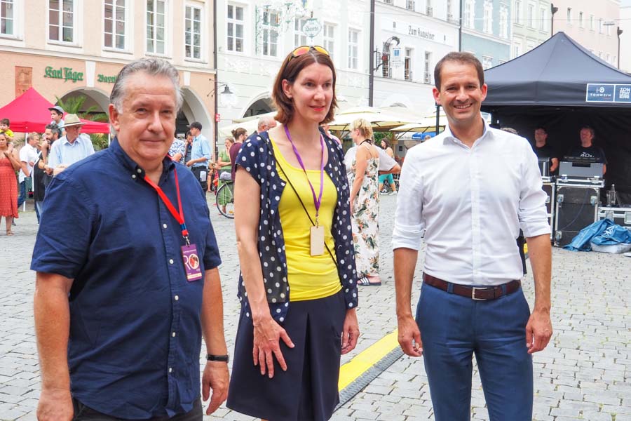 Inge und Martin Hilz (Spektakel) und Sabrina Obermoser (City-Management Rosenheim) bei der Spektakel Pressekonferenz in der Bürgerstiftung Rosenheim