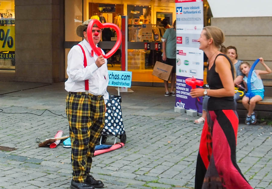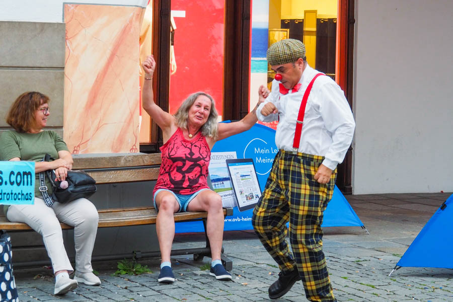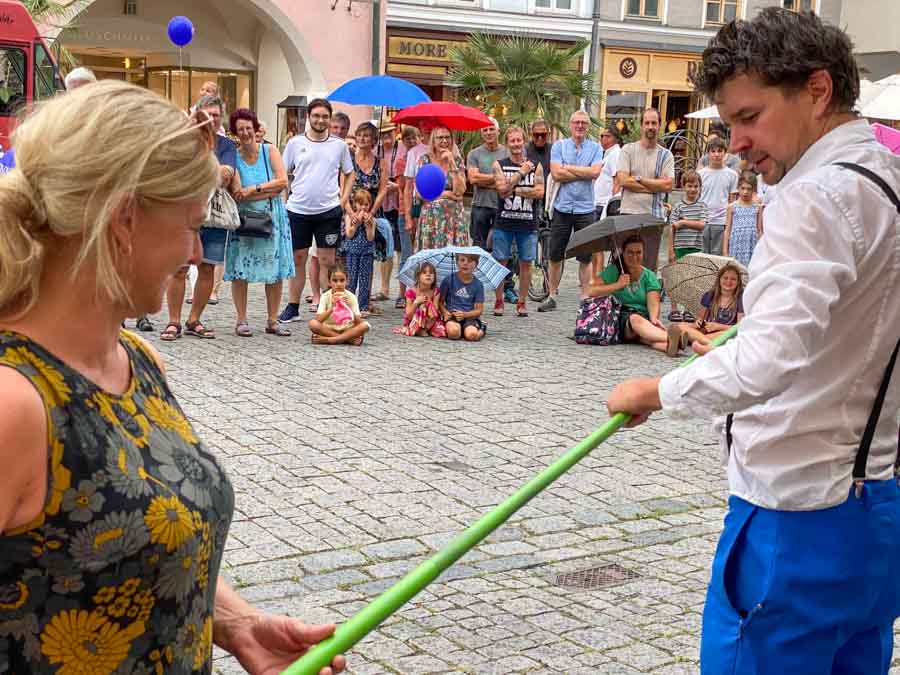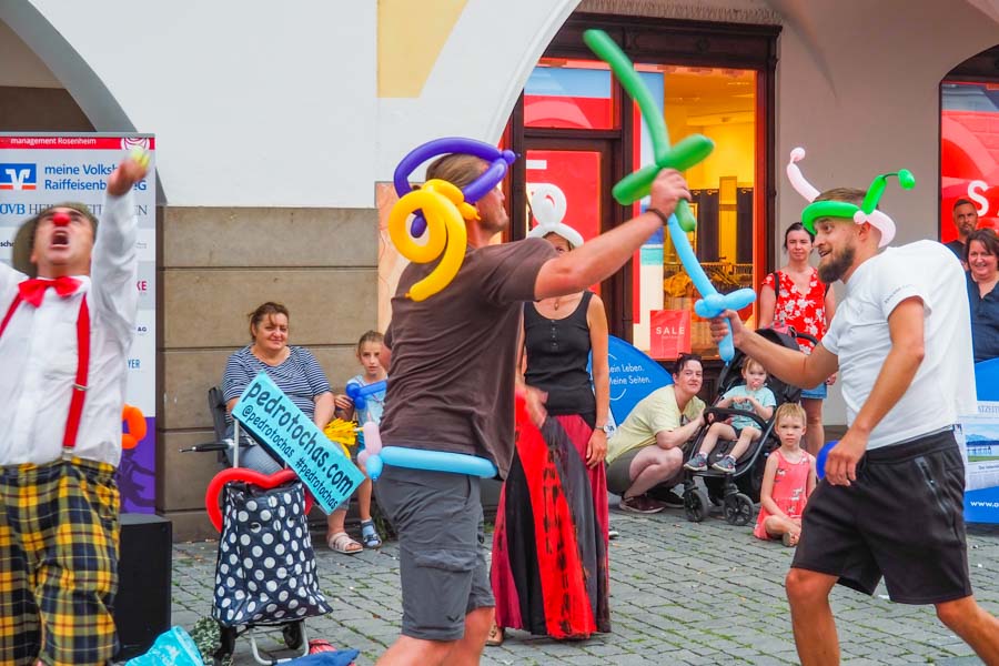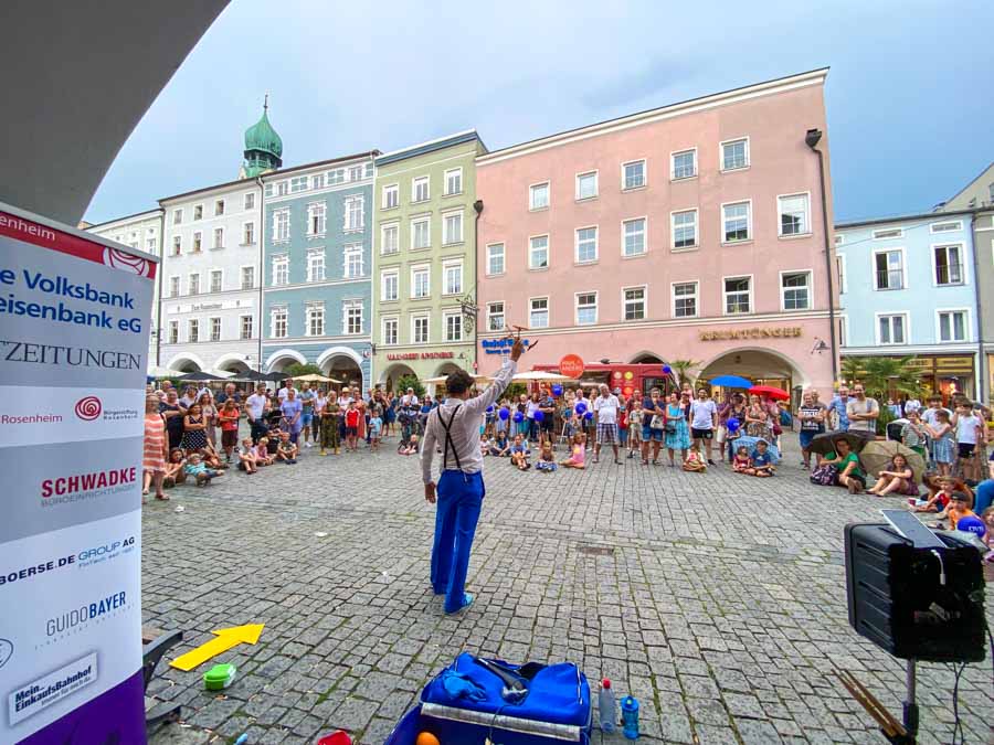 Vergangenes Wochenende (5.+6.8.2022) verwandelte sich die Rosenheimer Fußgängerzone in eine fantastische Straßenkunst-Bühne auf höchstem Niveau und ehe man sich versah, wurde man Teil des Spektakels. Es waren wunderbare Momente und es hat Spaß gemacht, in all die fröhlichen Gesichter zu sehen.