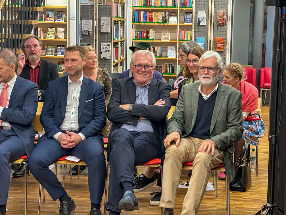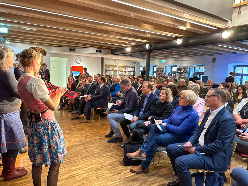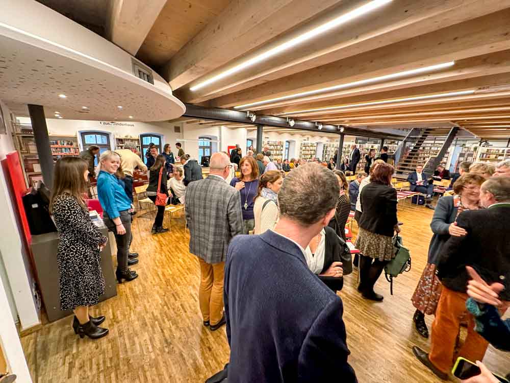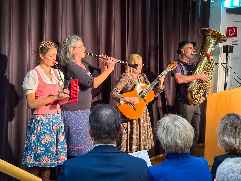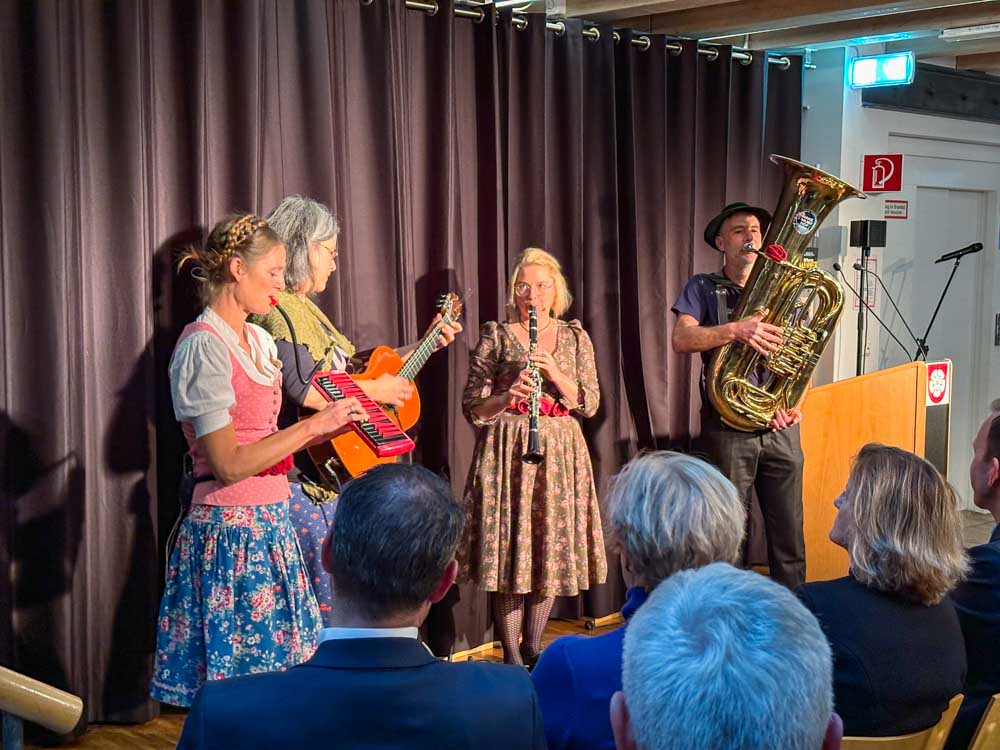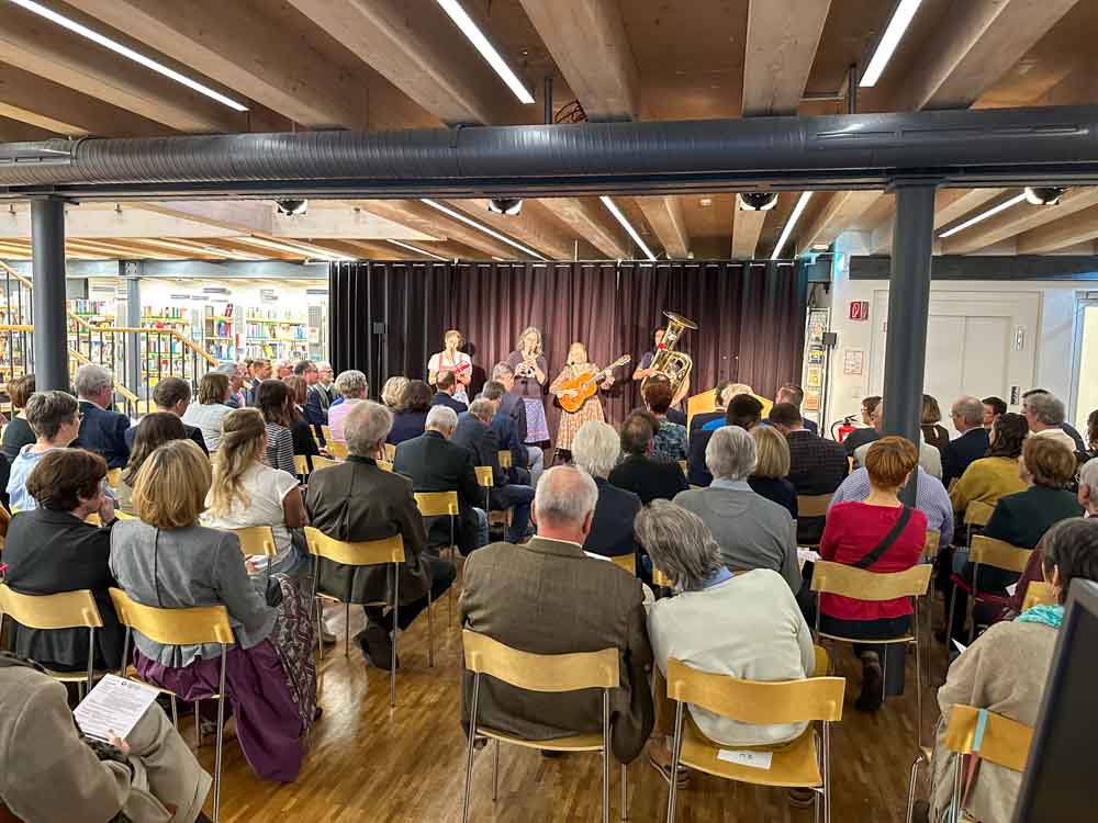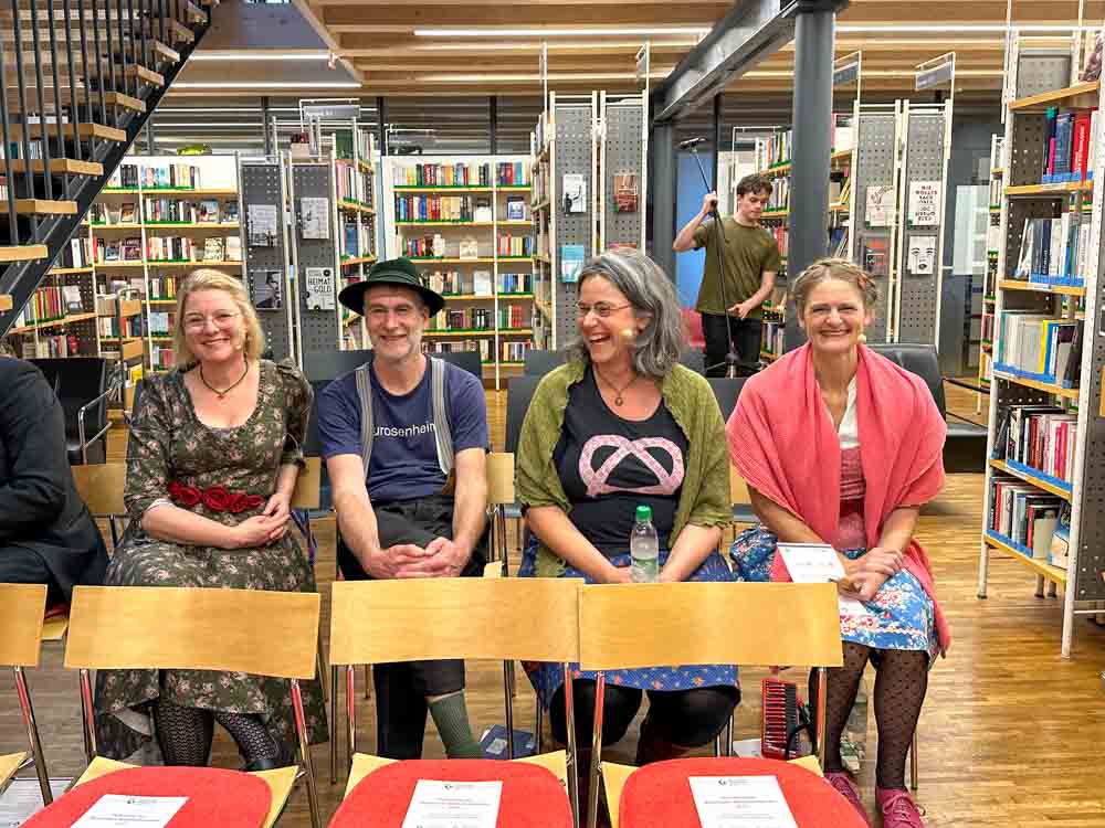 Musikalisch spielten in gewohnter Manier die Neurosenheimer auf. Sie haben eigens für die Stadtbibliothek den Song Da geh i gern nei geschrieben. Ganz wunderbar!