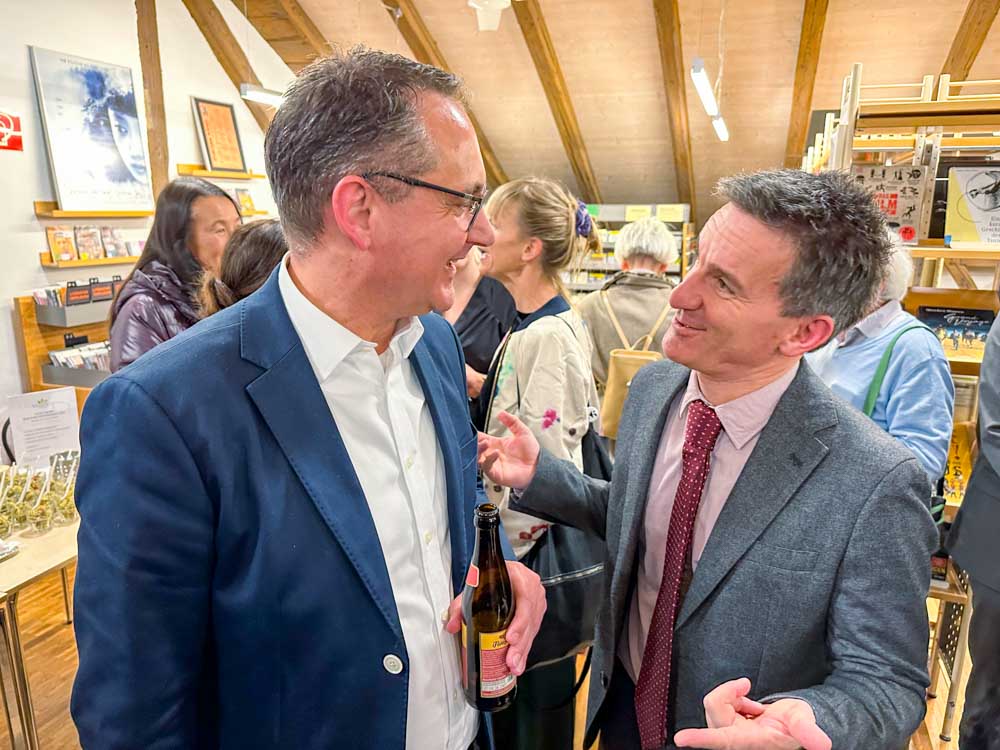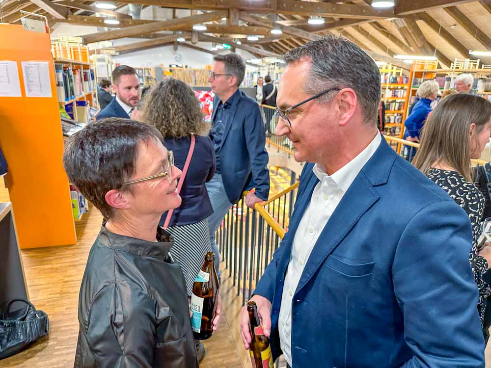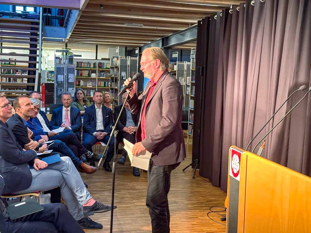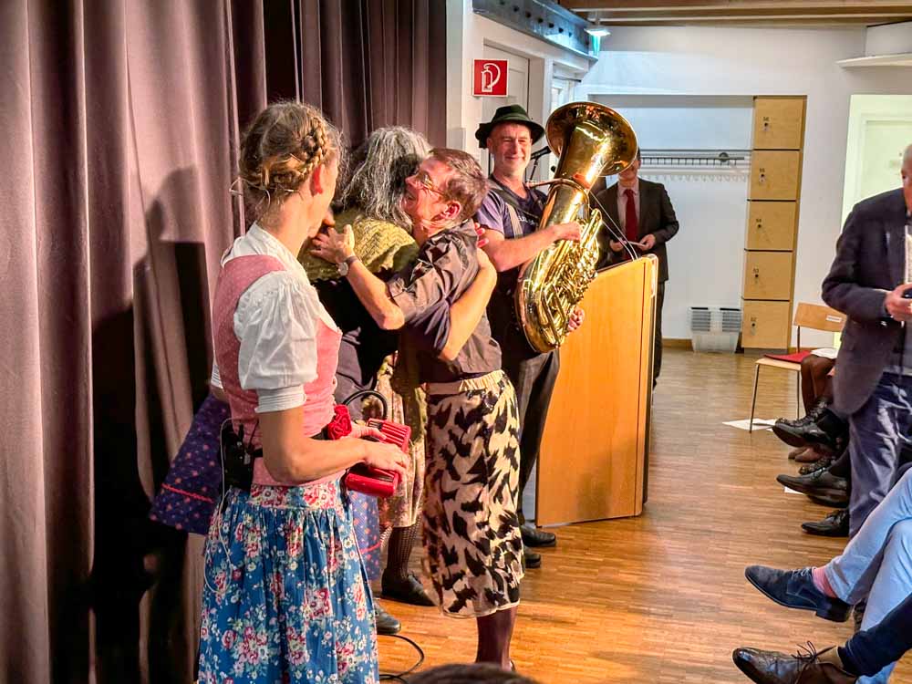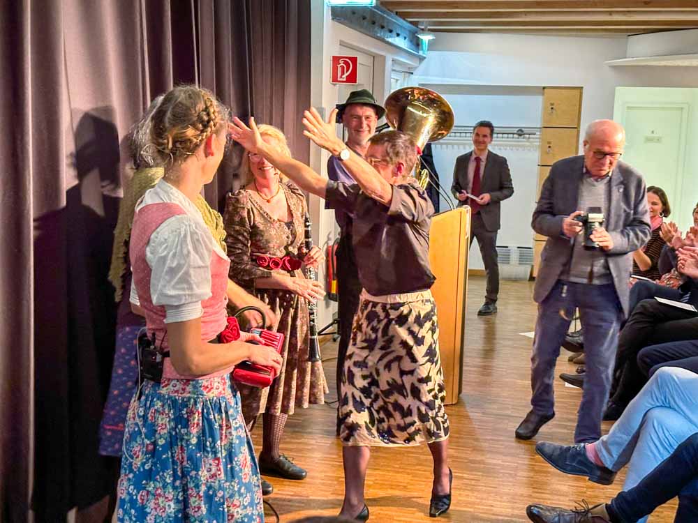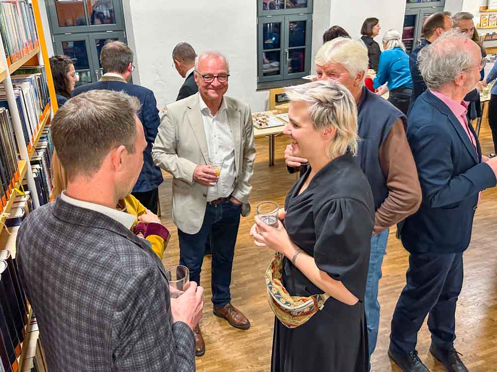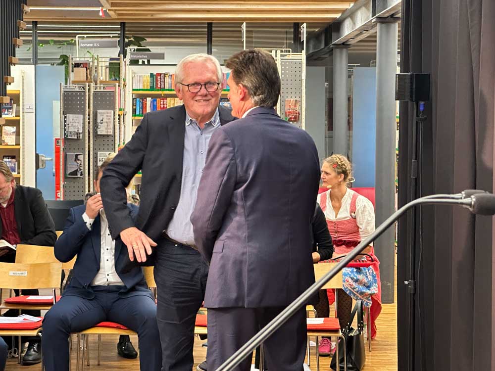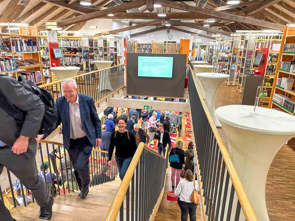 Musikalisch spielten in gewohnter Manier die Neurosenheimer auf. Sie haben eigens für die Stadtbibliothek den Song Da geh i gern nei geschrieben. Ganz wunderbar!