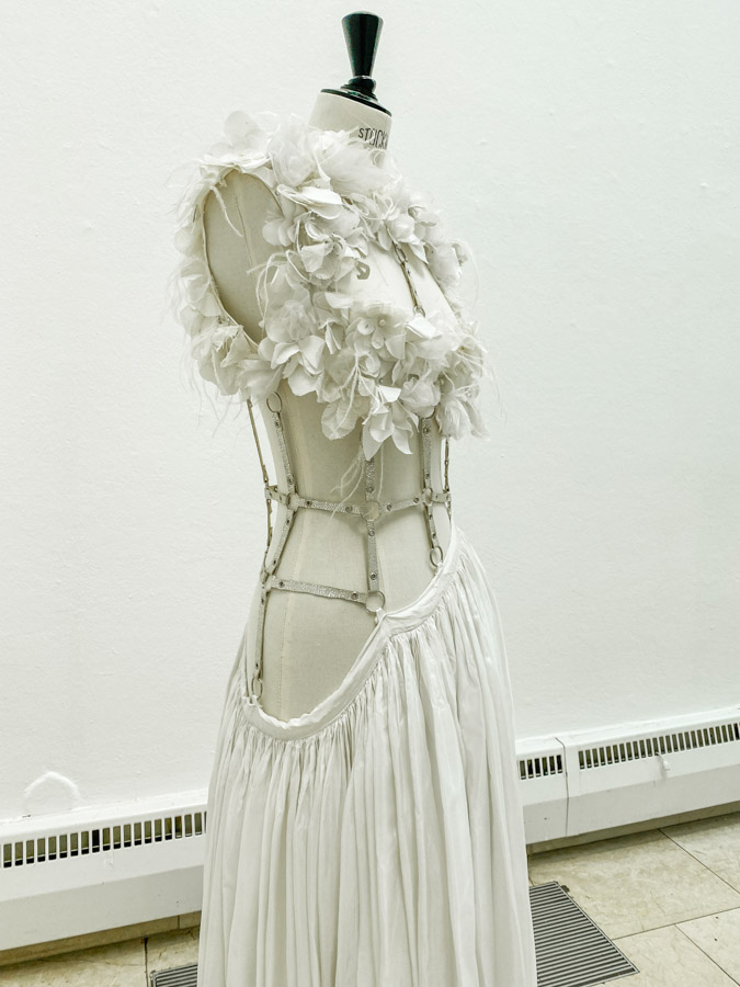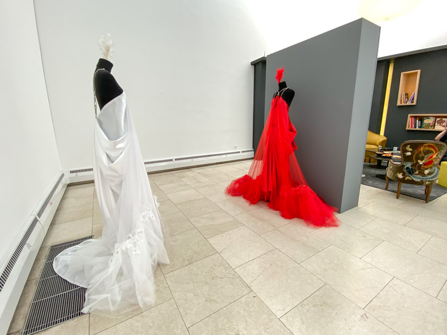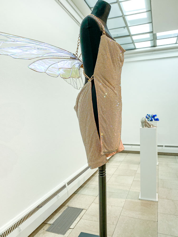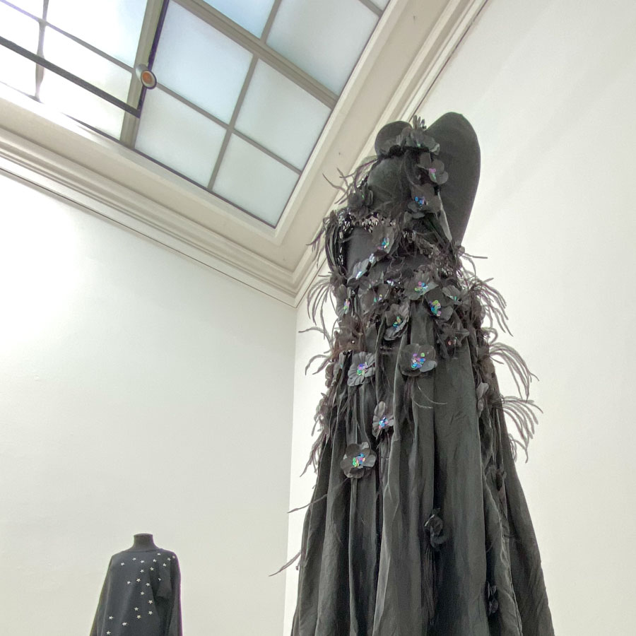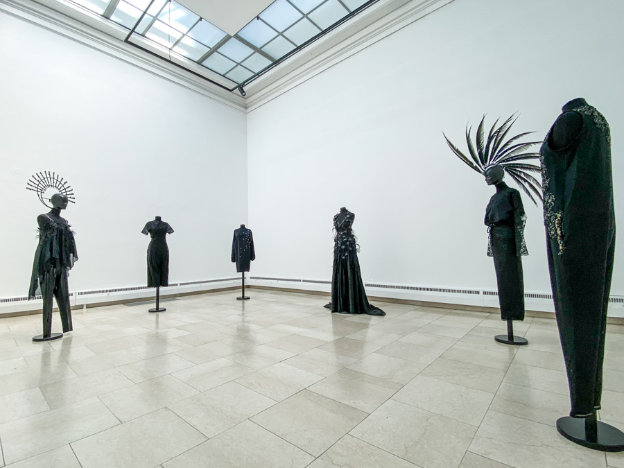 Leider viel zu kurz muss man hier sagen, denn nur zwei Tage kann man die großartigen und aufwendig veredelten Haute Couture Kreationen in den Räumen der Städtischen Galerie bewundern. Die Modelle sind atemberaubend und entführen in die Welten der sphärischen Schönheit und in die Erzählungen der Märchen.