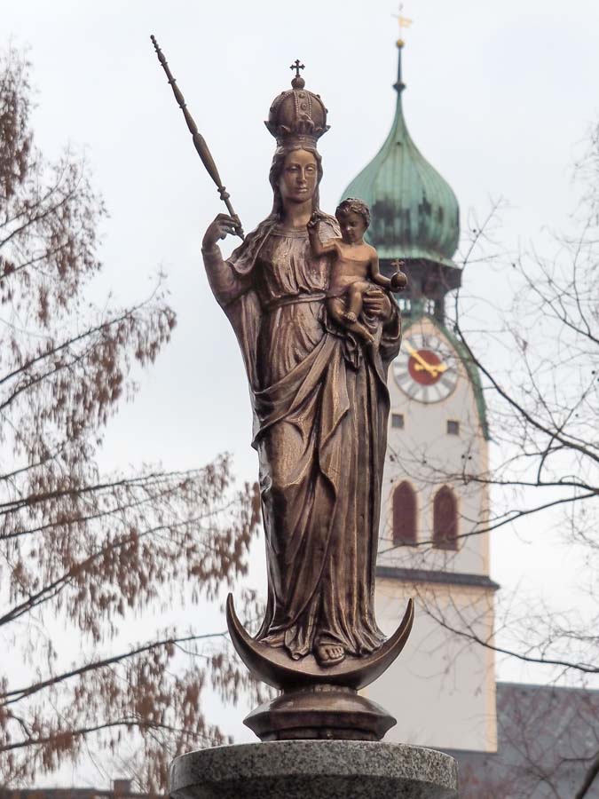 Die Marien Statue steht im Riedergarten Rosenheim. Sie wurde dort übrigens am 8. September 2009 (Maria Empfängnis) aufgebaut.