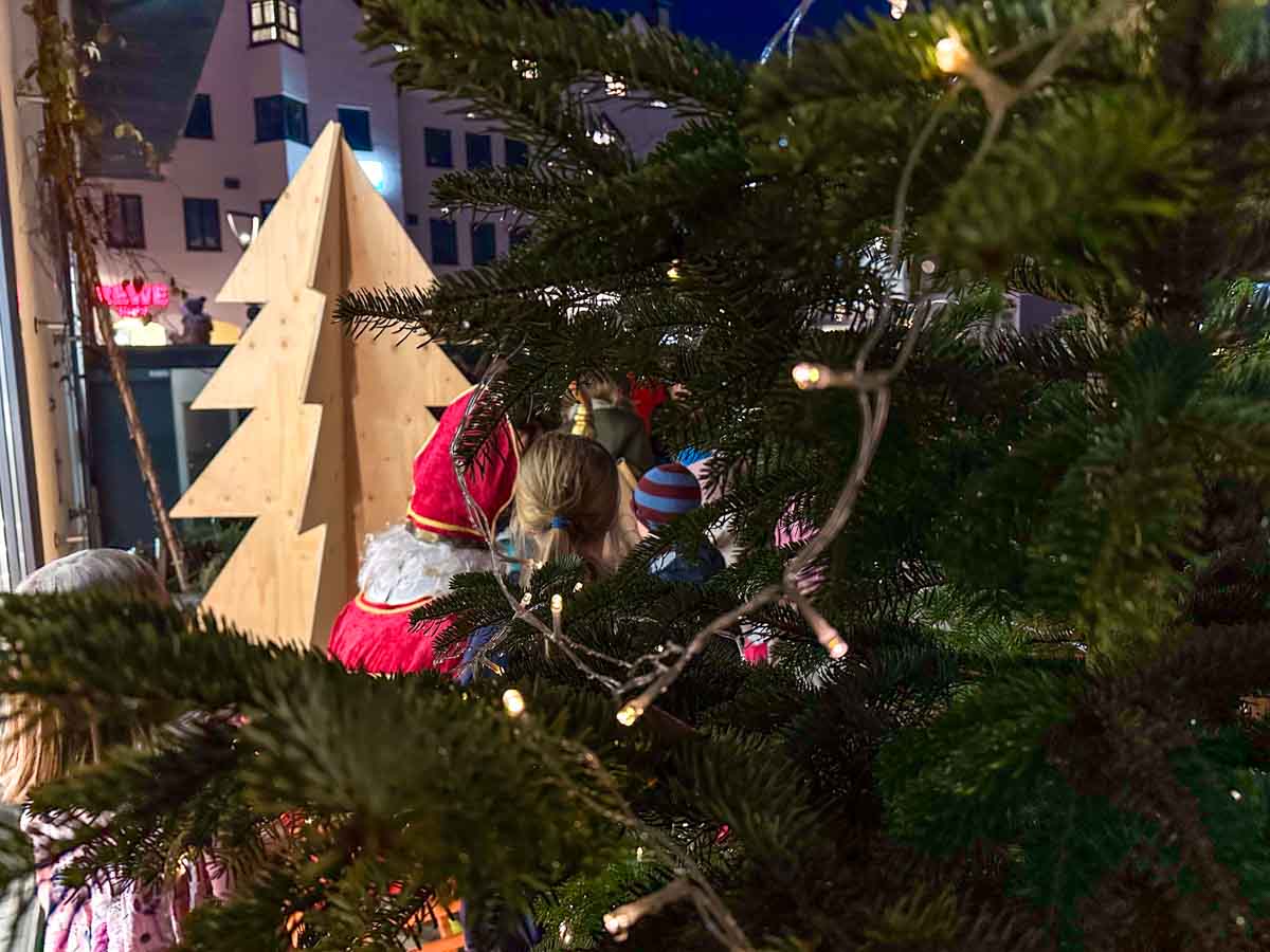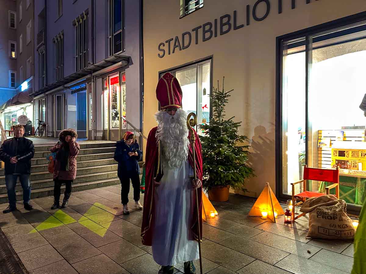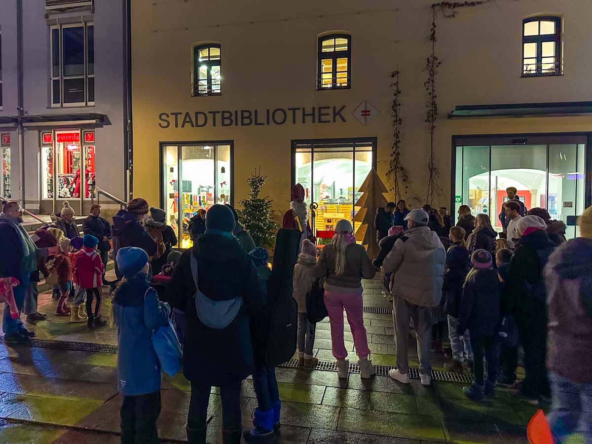 Vor der Stadtbibliothek gab es für alle Kinder eine kleine Überraschung - überreicht vom Nikolaus.