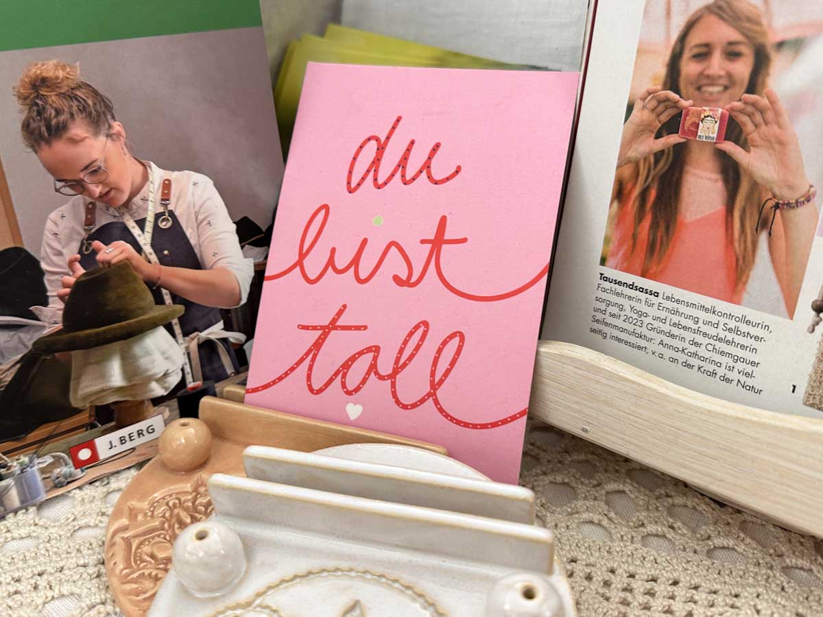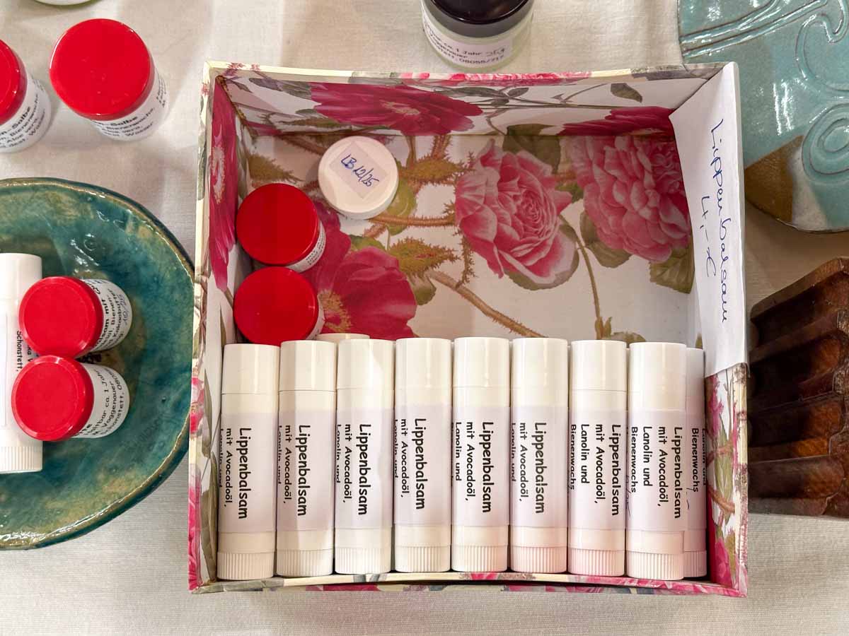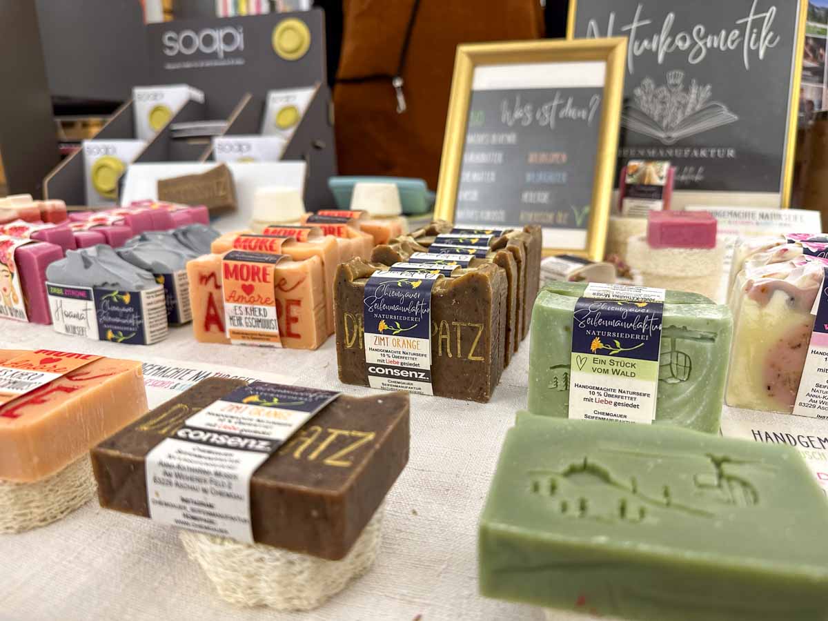 Vom Erdgeschoss bis unters Dach präsentierten Aussteller ihre wunderbaren Produkte wie z.B. Öle, Seifen, Kräuter, Upcycling-Mode, Kerzen, gestrickte, getöpferte, genähte und bedruckten Waren, verschiedene Lebensmittel, Zutaten, Soucen, Aufstriche, Chutneys (...).
