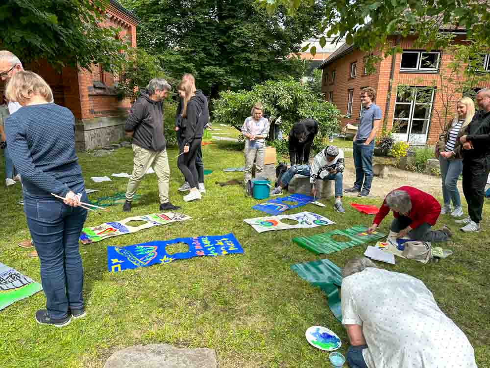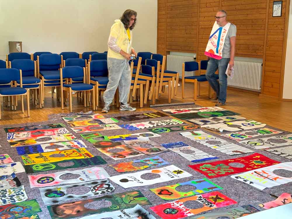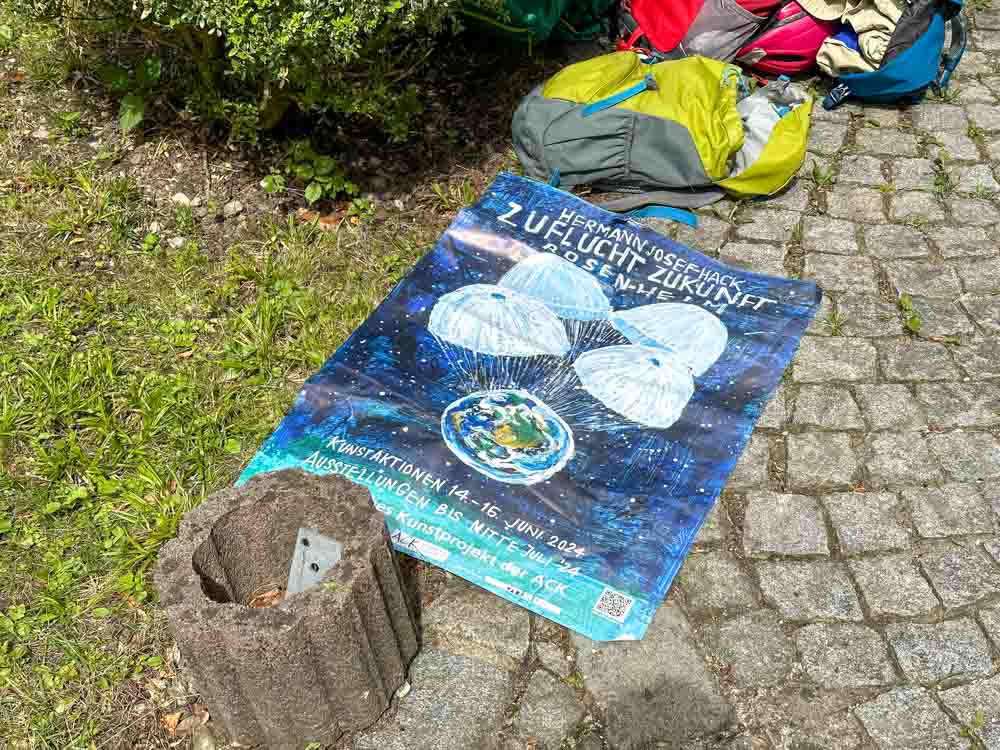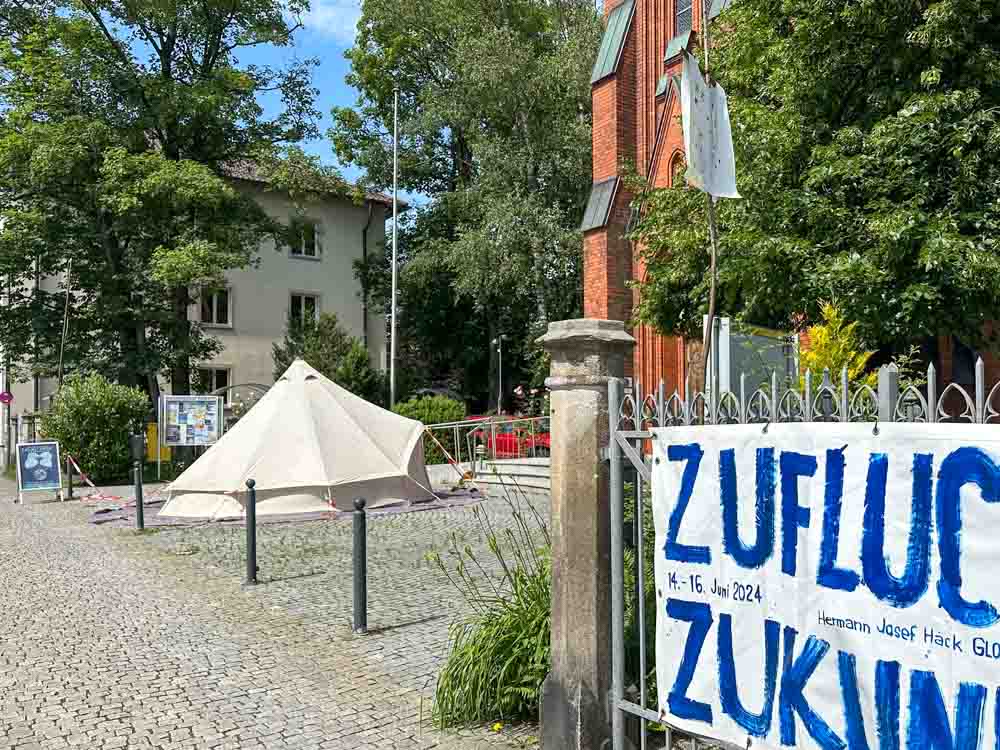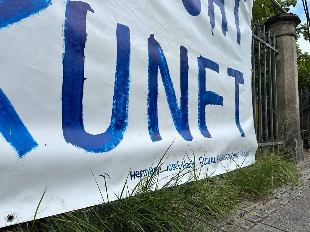 Der weltweite renommierte Künstler Hermann Josef Hack war auf Einladung der Arbeitsgemeinschaft Christlicher Kirchen (ACK) vom 14. bis 16.06.2024 in Rosenheim. Mit dem Kunstprojekt »Zuflucht Zukunft« waren alle eingeladen, sich an der Gestaltung einer nachhaltigen Zukunft mit Ideen, Visionen und neuen Erzählungen zu beteiligen. Gemeinsam wurde durch Kunst einen Impuls gesetzt - über Konfessionen, Religionen und Kulturen hinweg.