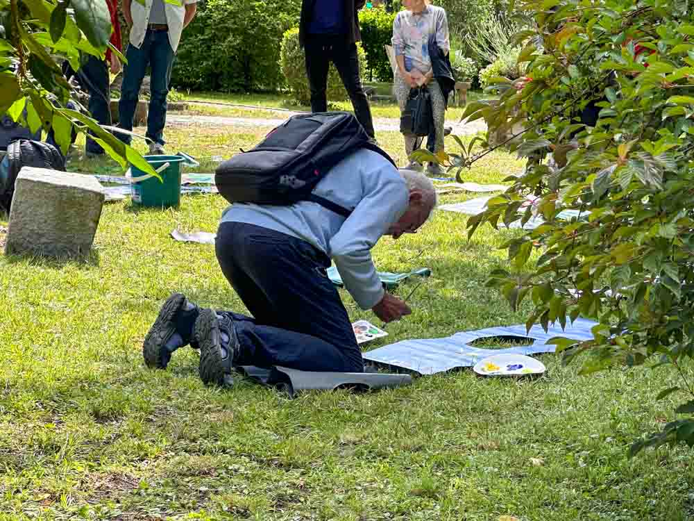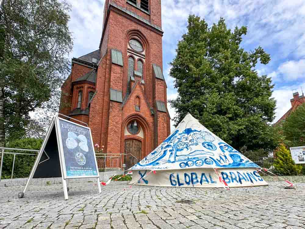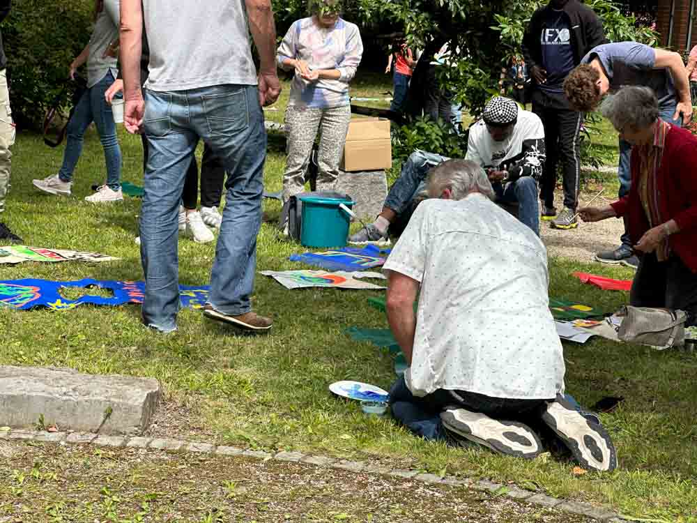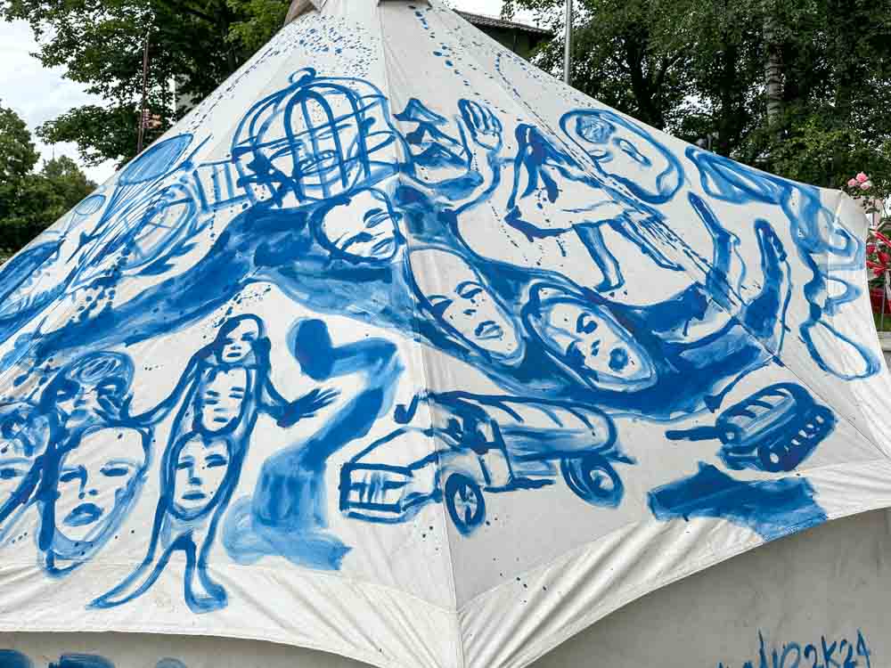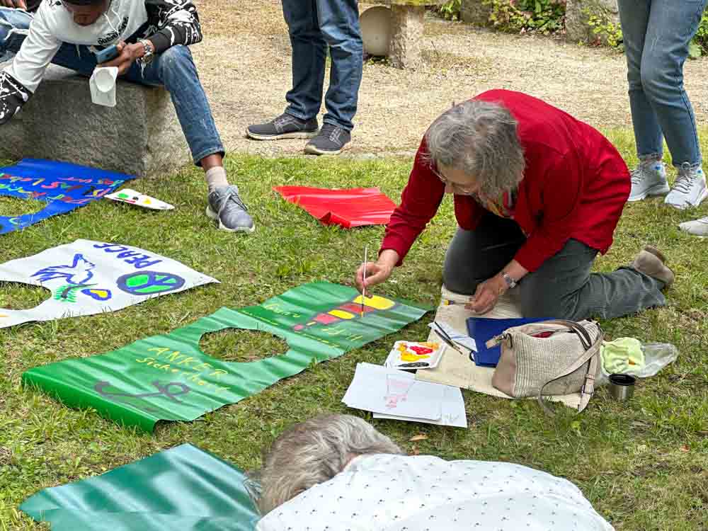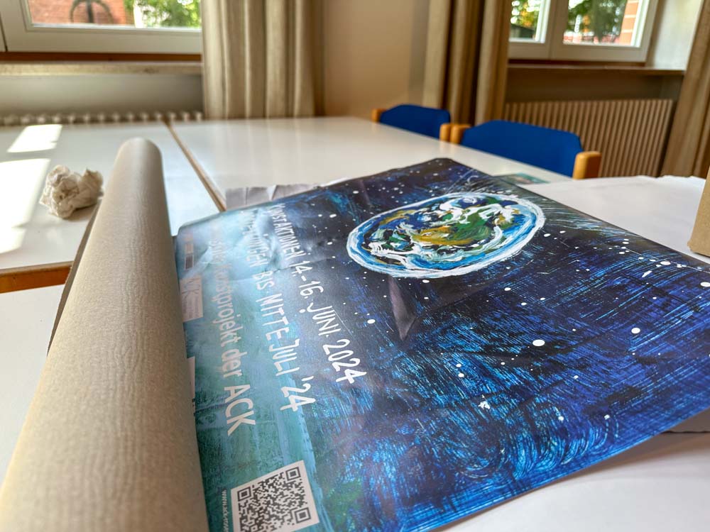 Der weltweite renommierte Künstler Hermann Josef Hack war auf Einladung der Arbeitsgemeinschaft Christlicher Kirchen (ACK) vom 14. bis 16.06.2024 in Rosenheim. Mit dem Kunstprojekt »Zuflucht Zukunft« waren alle eingeladen, sich an der Gestaltung einer nachhaltigen Zukunft mit Ideen, Visionen und neuen Erzählungen zu beteiligen. Gemeinsam wurde durch Kunst einen Impuls gesetzt - über Konfessionen, Religionen und Kulturen hinweg.