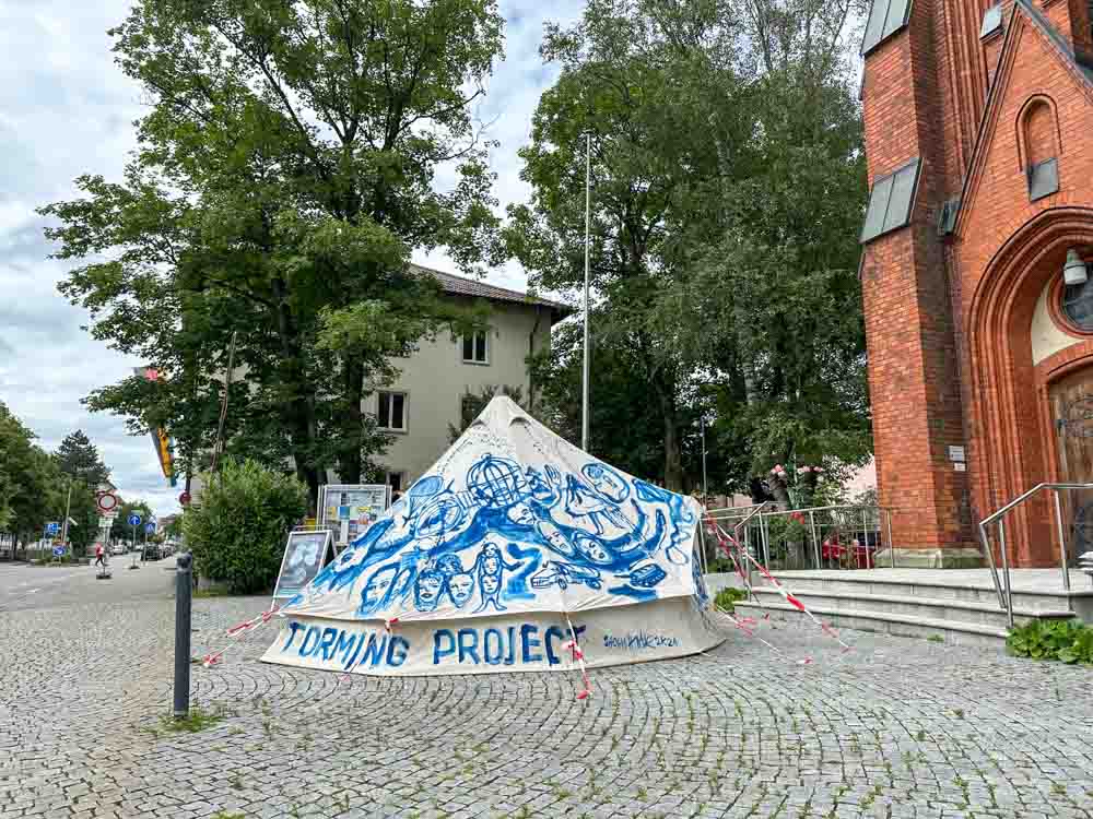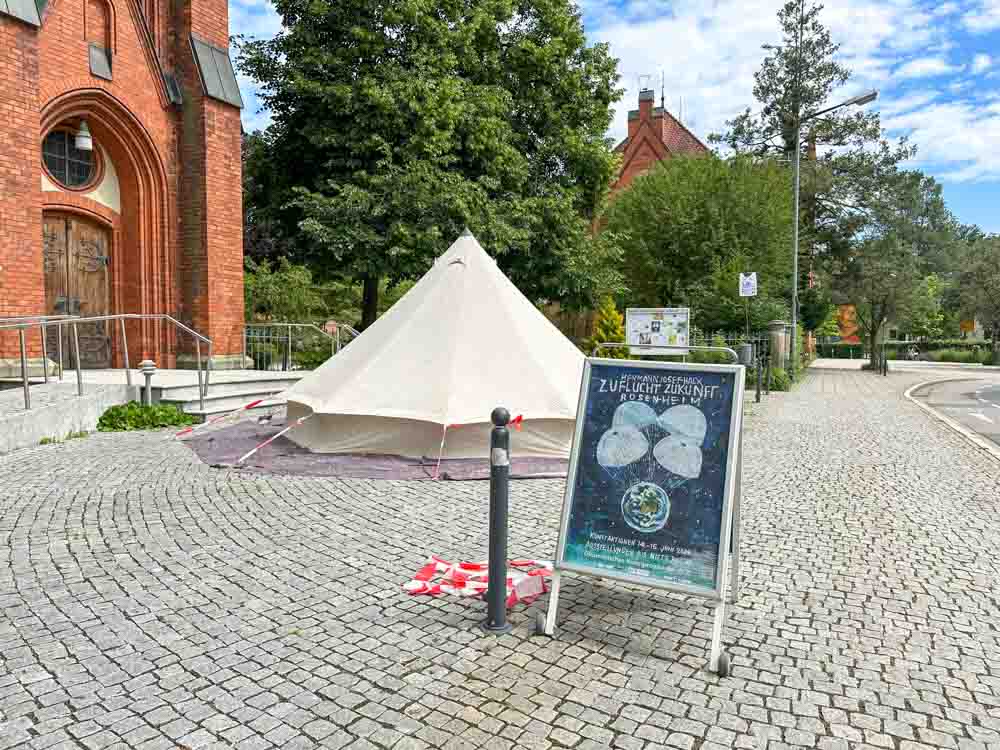 Pfadfinderzelt vor der Erlöserkirche Rosenheim.