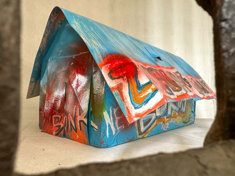 Das Kunstwerk "Bewohnbares Bild" ist in der Nacht von 20.06. auf 21.06.2024 von jemand Unbekannte) mutwillig zerstört worden. Zur Mahnung verbleibt die Arbeit nun bis zum Ende der Ausstellung am 21. Juli 2024 an der Wand der Städtischen Galerie.