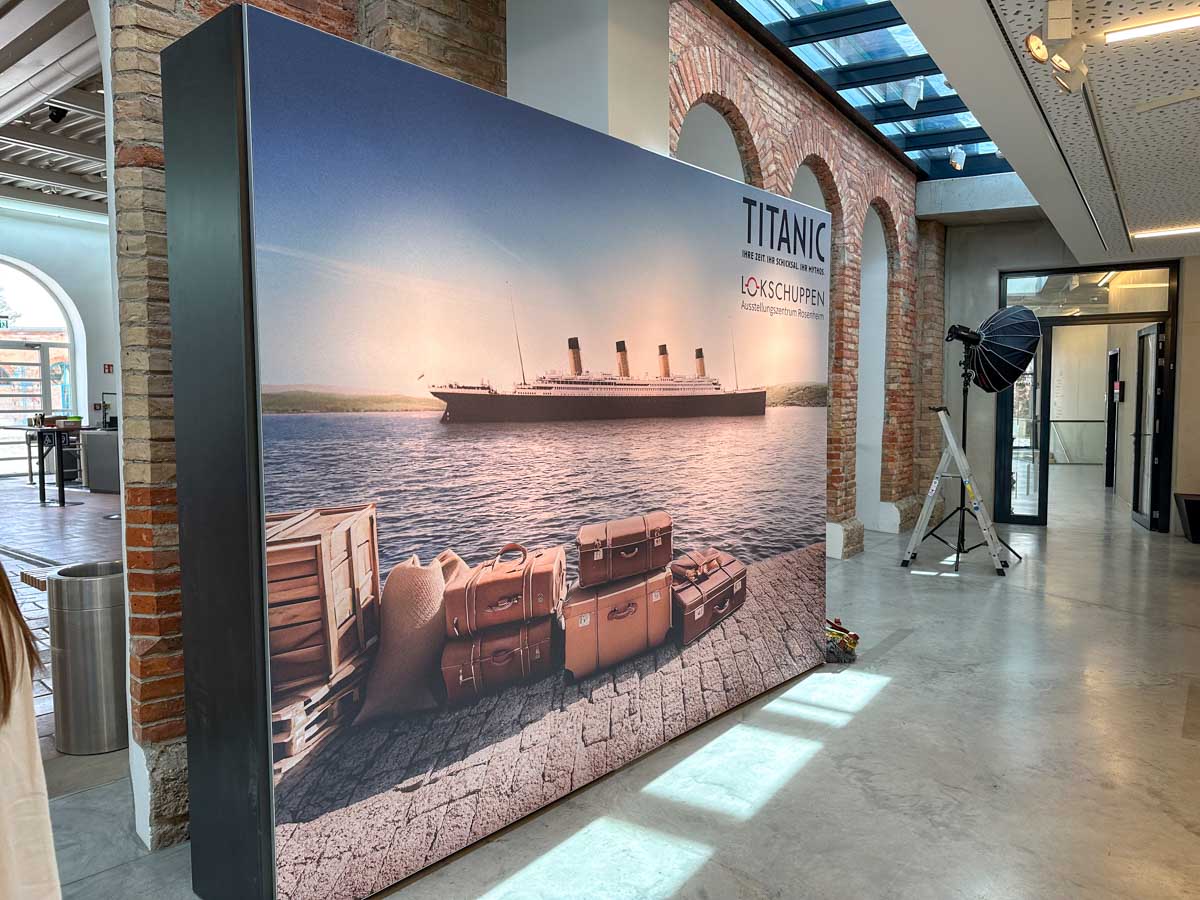 Leinen los für eine einzigartige Zeitreise: Vom 14. März 2025 bis 06. Januar 2026 präsentiert das Ausstellungszentrum Lokschuppen in Rosenheim auf 500m² Fläche die Ausstellung »Titanic«. In der immersiven Erlebnisausstellung zeigt sie den Luxusdampfer als Symbol der Zeit: für gesellschaftliche Hierarchien, Innovationen in Technik und Verkehr, für Kunst und Mode der frühen 1910er Jahre. Die Geschichten von Passagieren und der Crew machen das Drama greifbar – vom Millionär über die Auswandererfamilie bis hin zum Heizer.