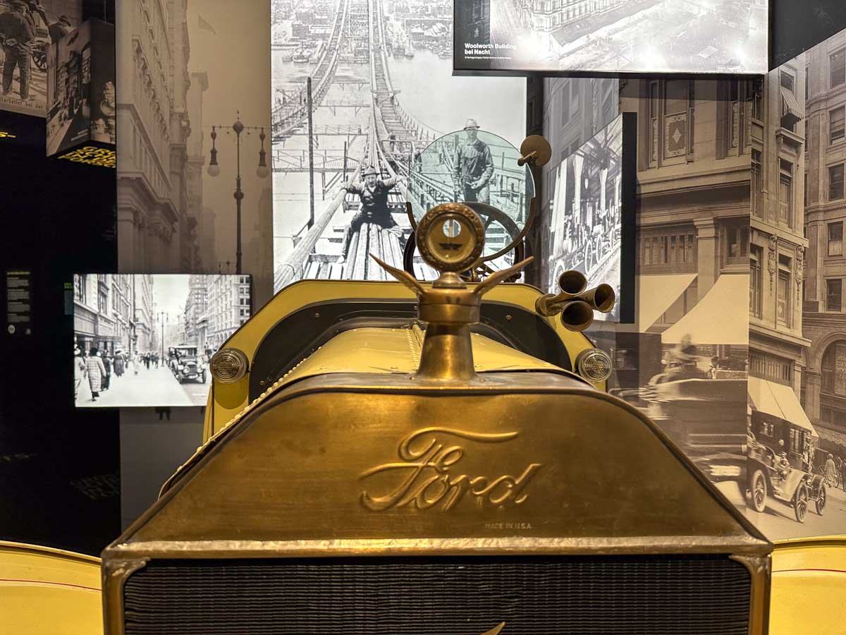 Ein besonderes Highlight ist ein Ford Model T von 1910 als Symbol für den technischen Fortschritt der Epoche. Seine Serienproduktion revolutionierte die Mobilität und machte das Auto erstmals für breite Bevölkerungsschichten erschwinglich.