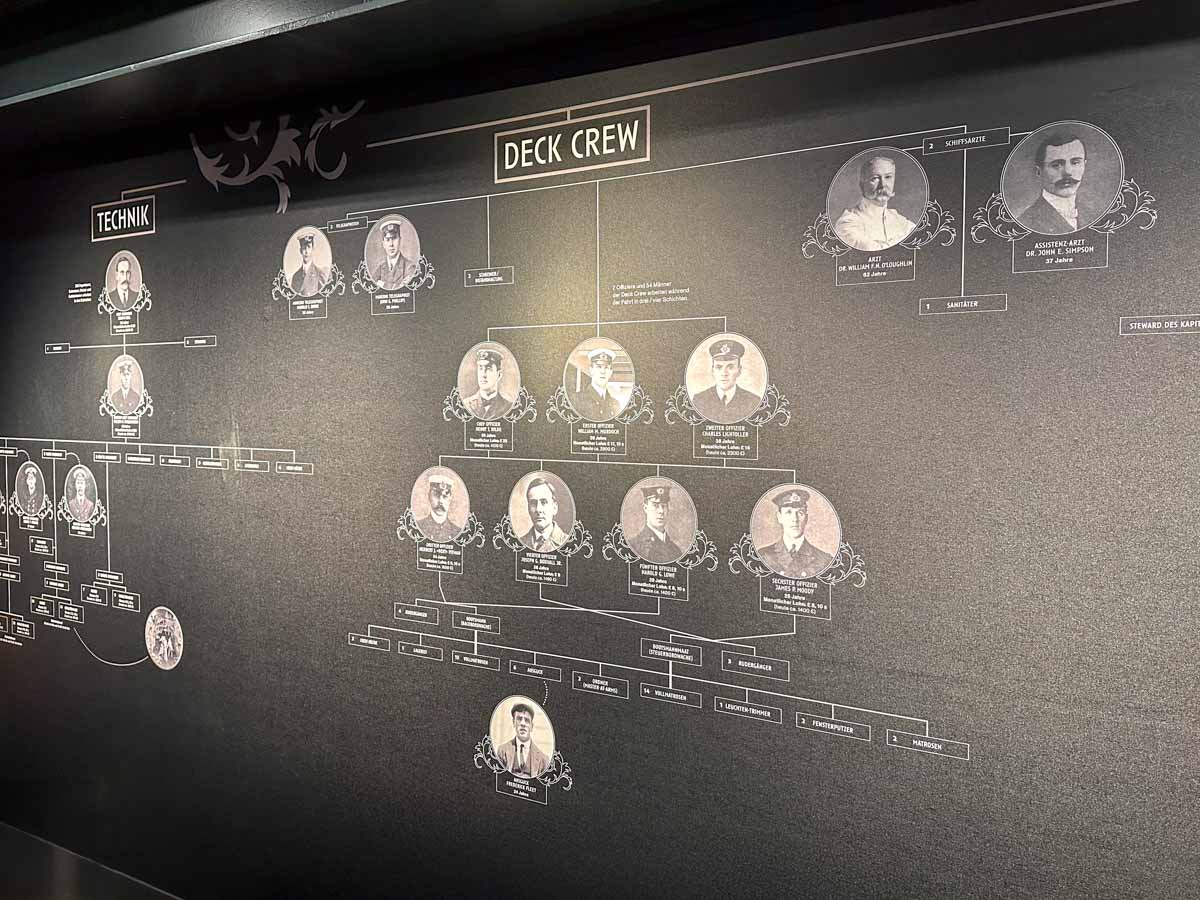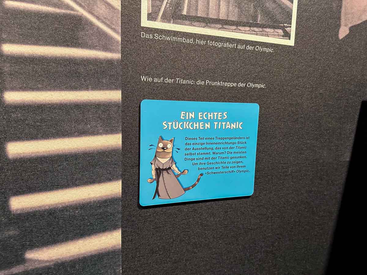 Ein Großteil davon stammt original von der Titanic, ihrem Schwesterschiff der Olympic oder aus deren Ära. Zum ersten Mal in Deutschland wird einer der Originalbaupläne der Titanic gezeigt, den der Lokschuppen exklusiv aus Irland erhalten hat. Aber auch viele andere Objekte werden die Besuchenden zum Staunen bringen, wie beispielsweise die Taschenuhr eines verstorbenen Passagiers, ein Stück der Schiffs-Balustrade der Titanic sowie originale Briefe und Telegramme.