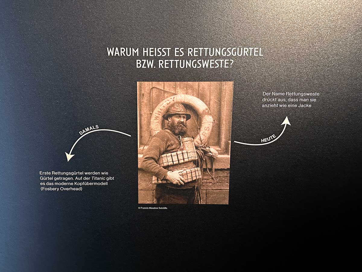 Noch nie ausgestellt wurde ebenfalls ein Rettungsgürtel von der Titanic, den ein Überlebender im Rettungsboot getragen hatte und der erst vor kurzem der Titanic zugeordnet werden konnte.