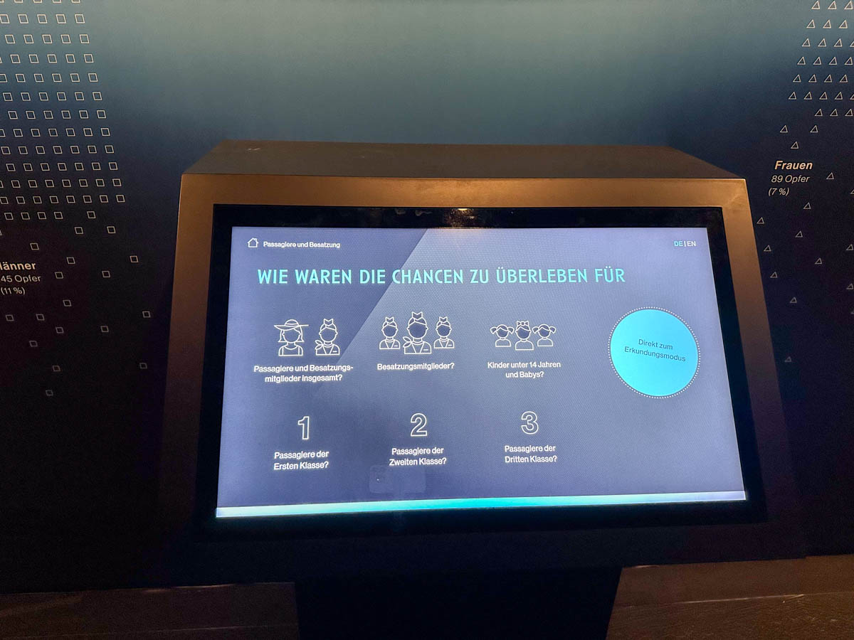 Interaktive Medienstation der Titanic - einfach die Felder berühren