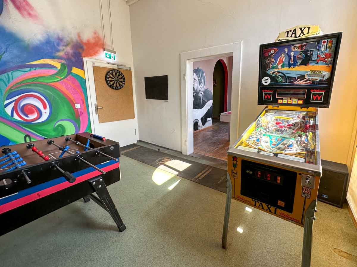 Im Turmcafe steht ein Billiard- und Kickertisch, ein guter alter Flipper sowie eine Dartscheibe! Außerdem kann man hier Schafkopfn, Schach und Backgammon spielen.