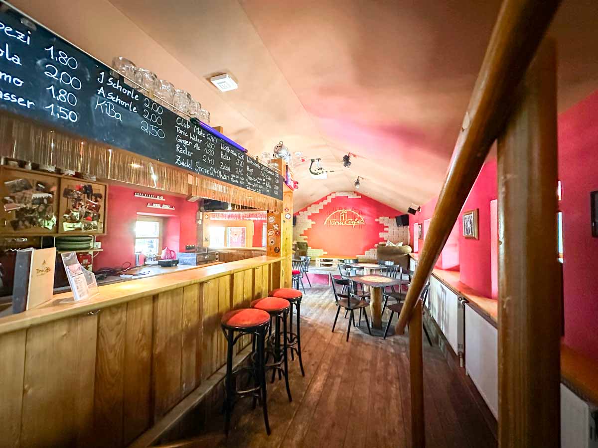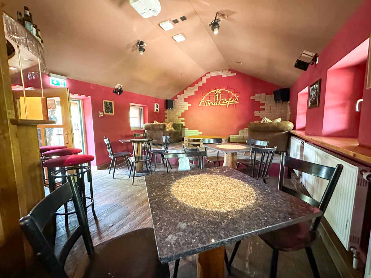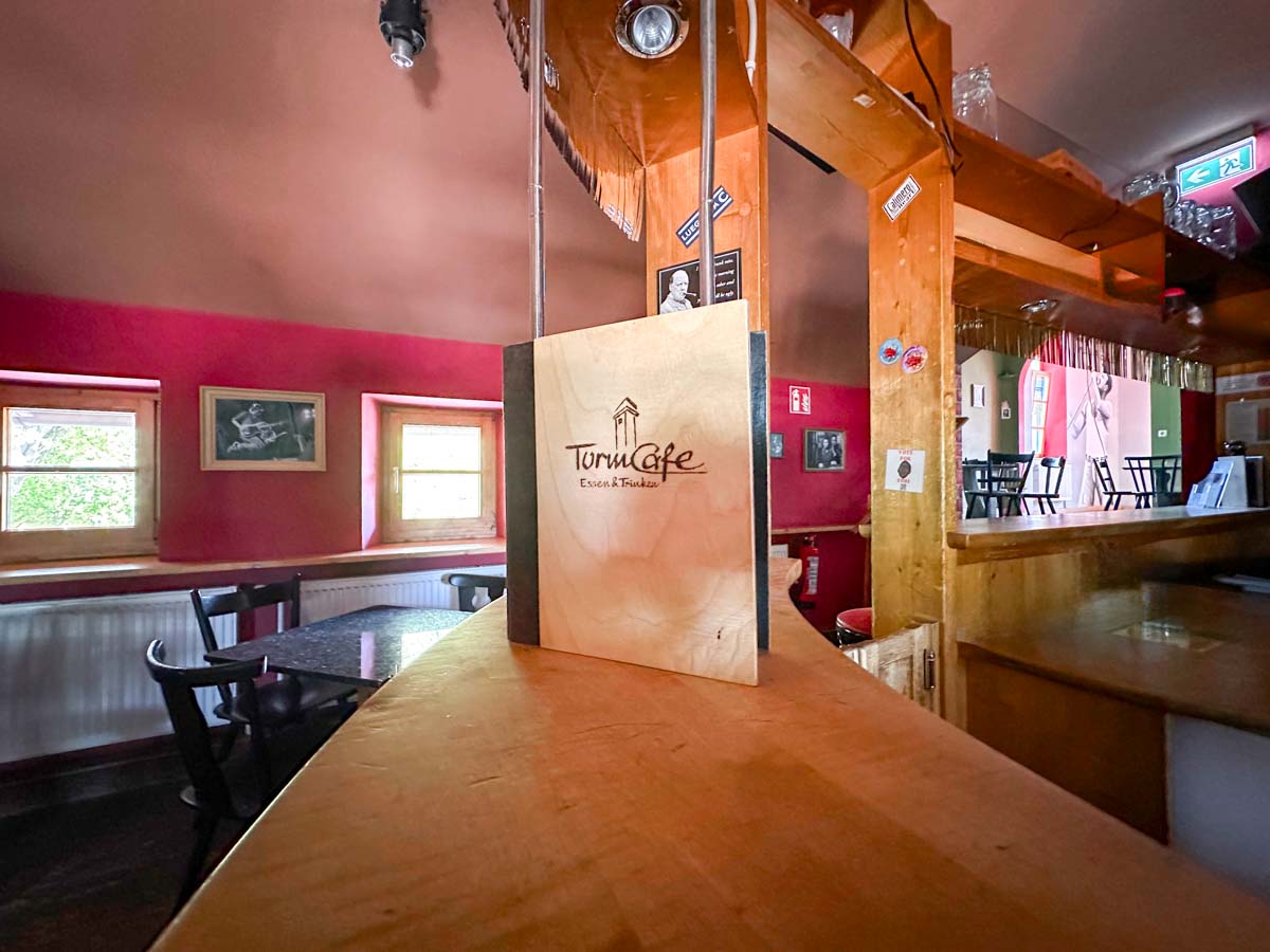 Das Turmcafe ist urgemütlich mit coolen Wandbemalungen der einzelnen Räume.